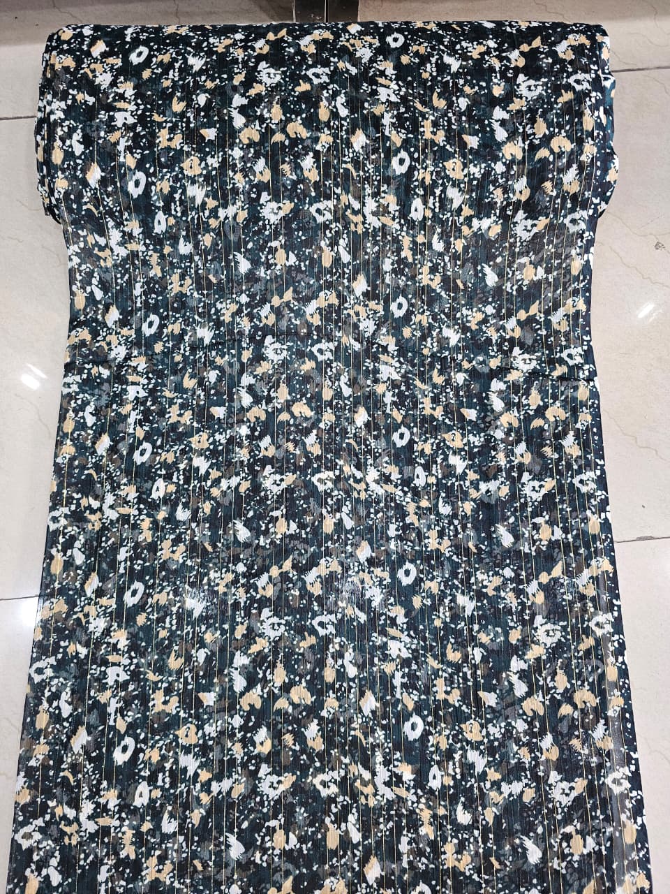 Bottle Green Floral Print Chiffon Fabric