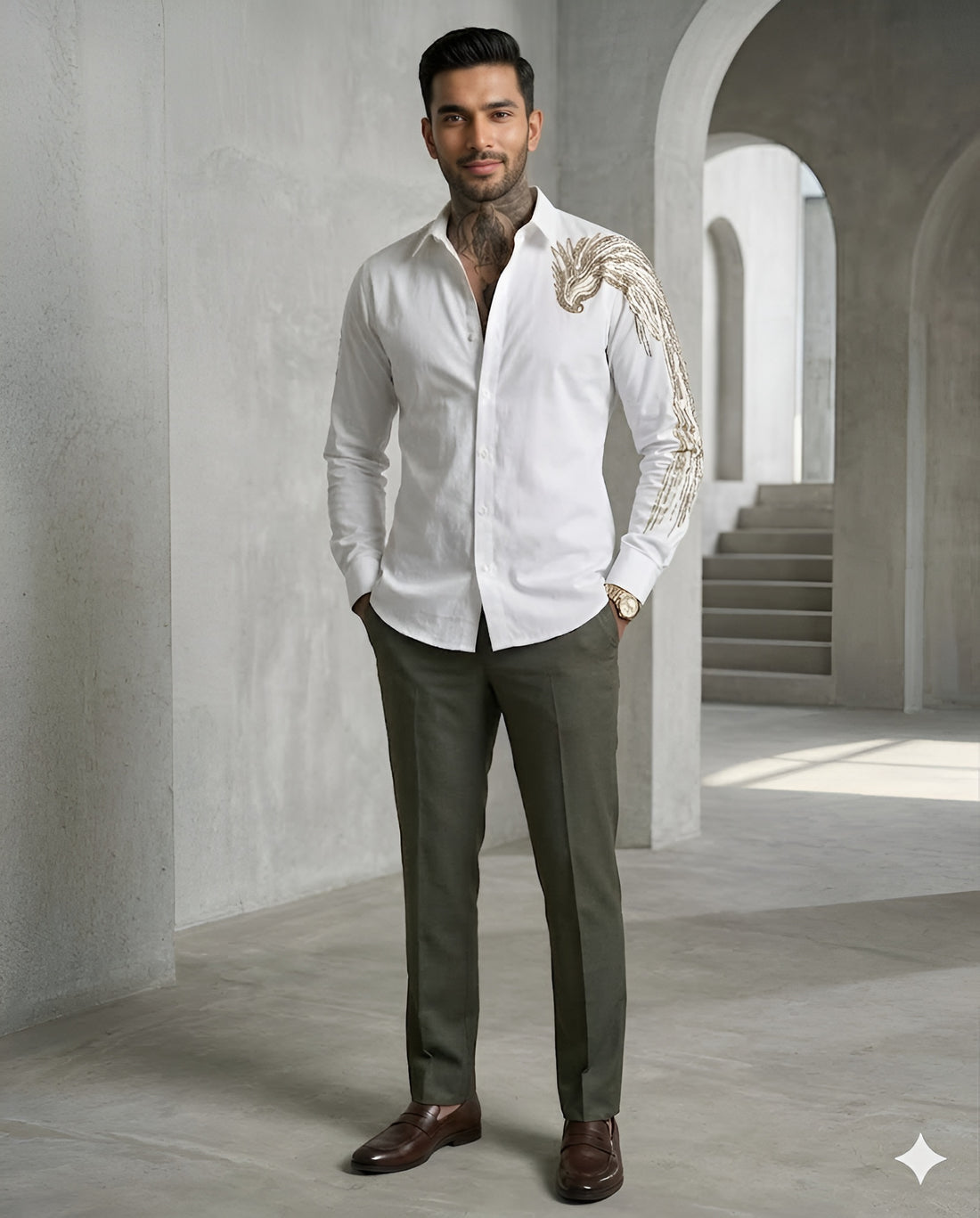 Men’s Cream Western Suit With Hand Embroidered Jacket