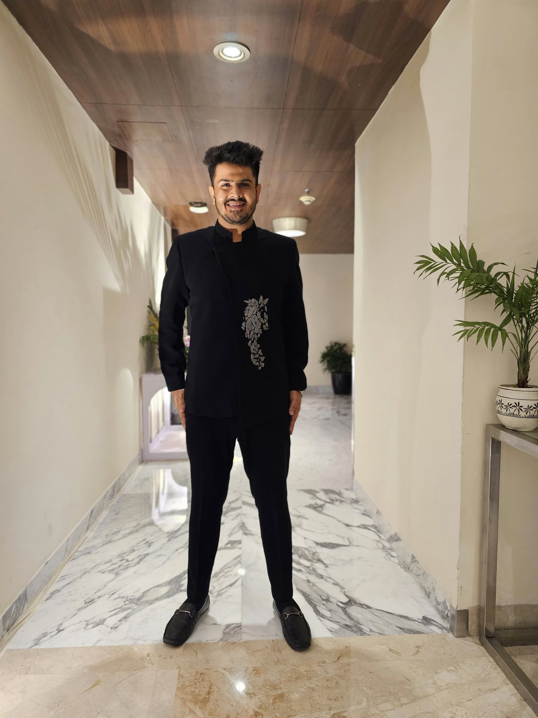Description Dapper in Black: Commanding attention with a touch of tradition in this exquisite Black...