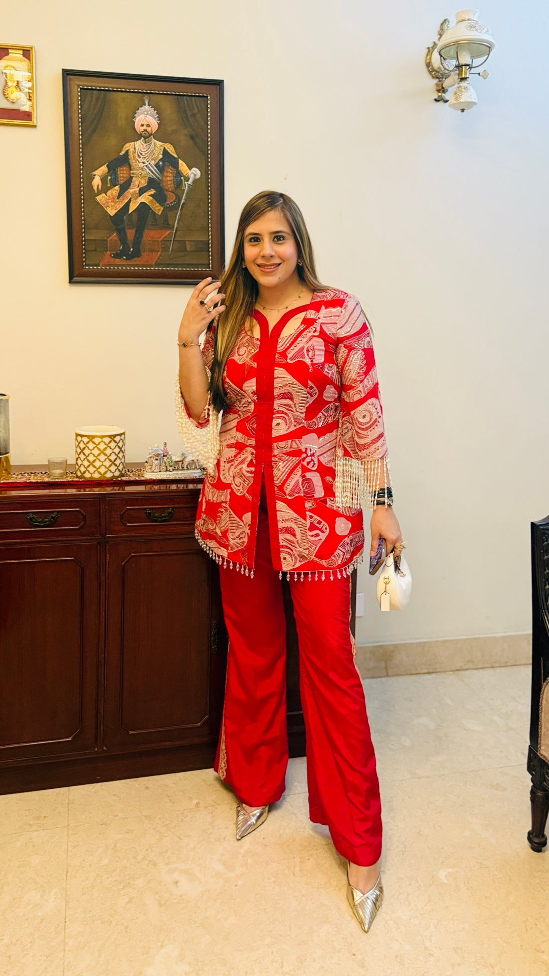Description Cherry Bollywood Co-Ord: Shine in this chic Red ensemble, blending traditional Bollywood vibes with...