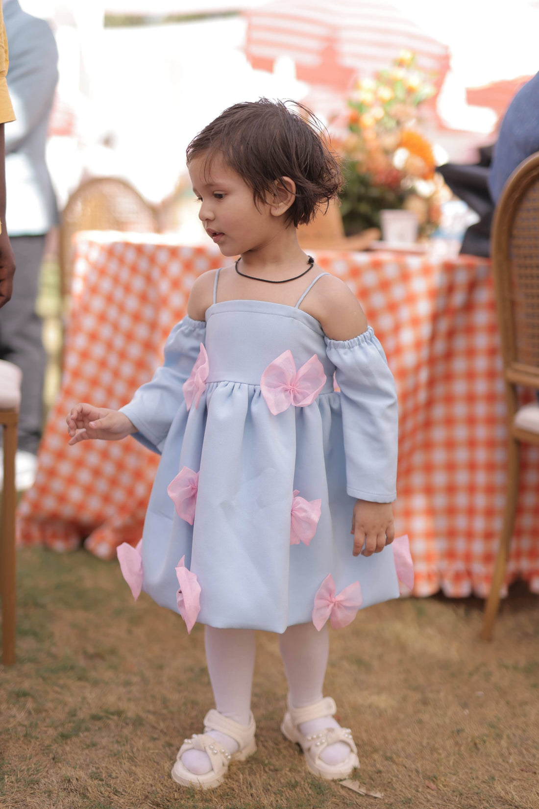 3iDescription The Bow in Sky Frock is a dreamy pastel blue dress 💙 featuring off-shoulder...