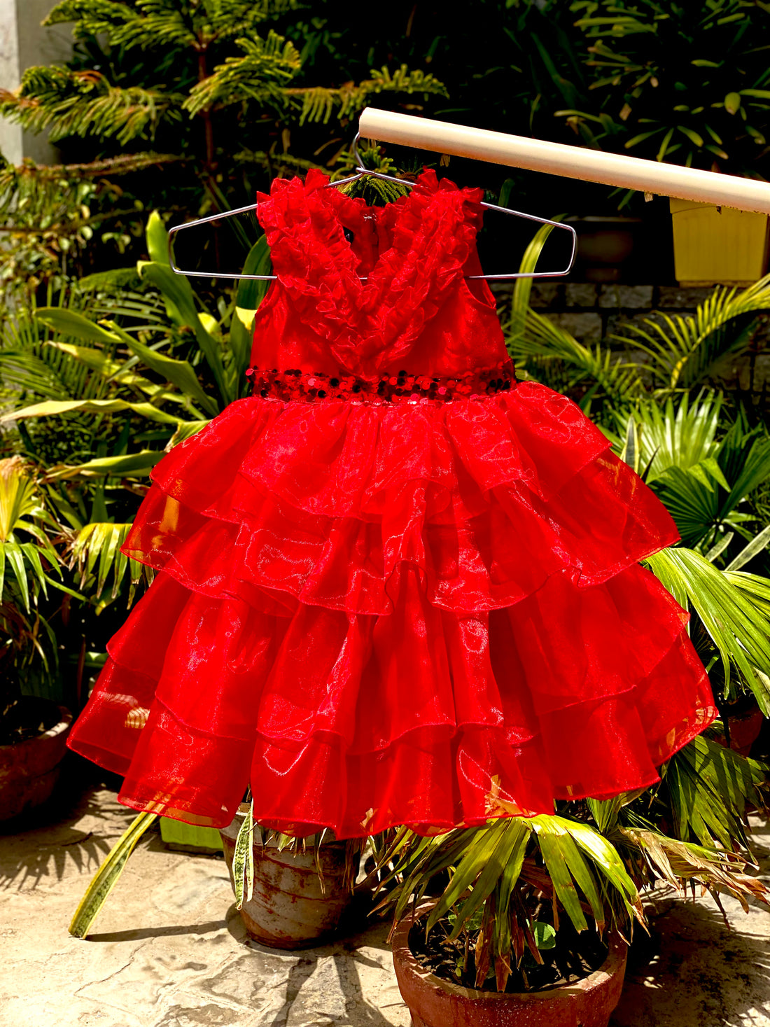 The Lakhina Couture Kid's Gown in Red Organza Base is an absolute vision. Featuring with Ruffles & bow...