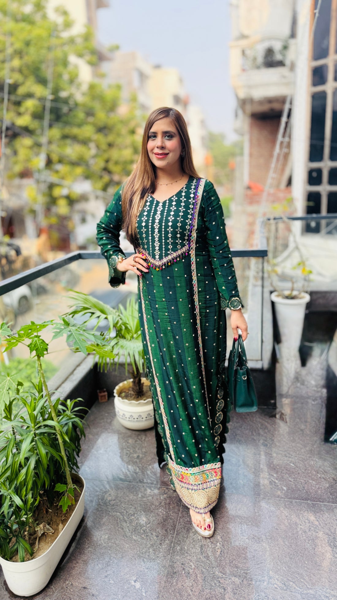 Description 💚 Grace the festive season in this stunning Green Teej Ethnic Maxi ✨ featuring...