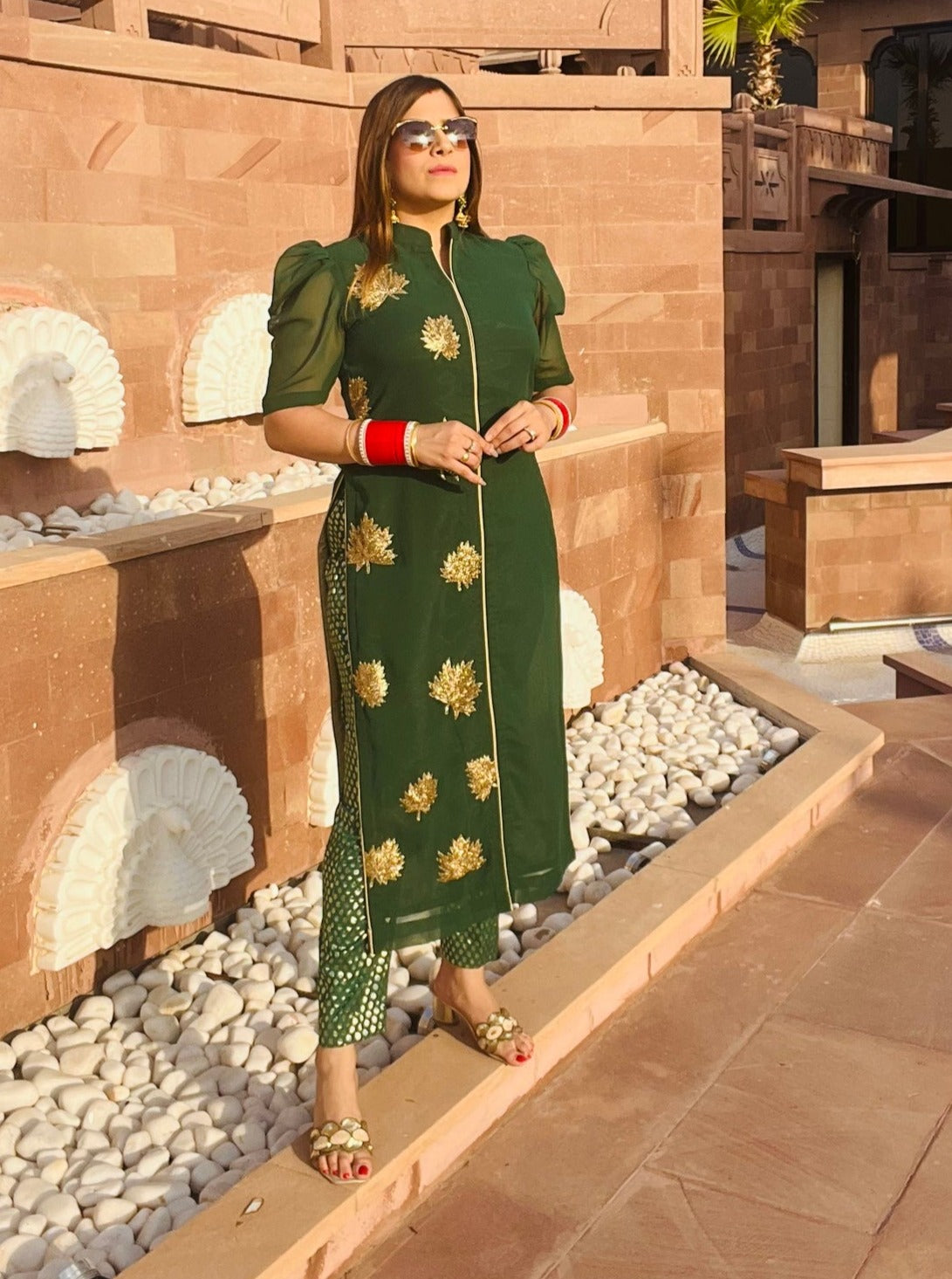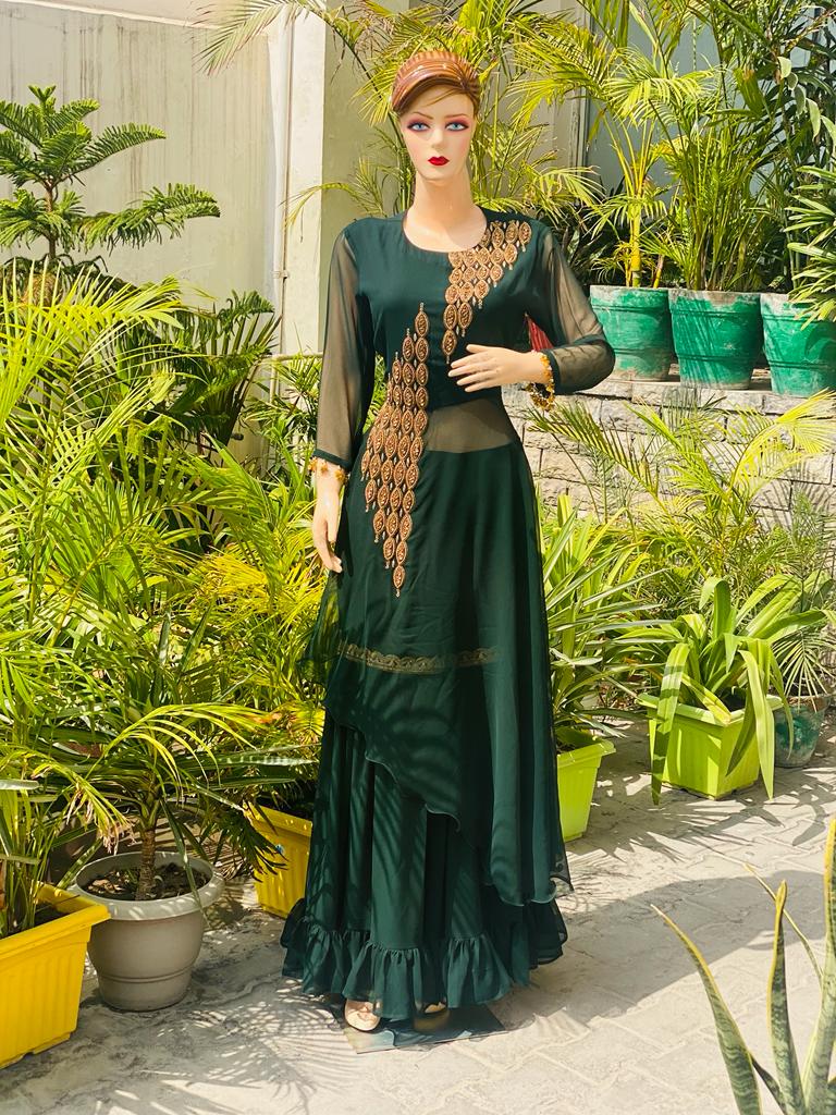 Stylish and summerish, exactly what we love about our all new bottle green georgette anarkali...