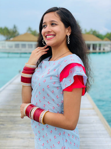 Don’t forget to twin on your most favourite holiday with your hubby. We understand your emotions and would want you to create memories of a lifetime with our all new pure cotton flamingo couple set. A lovely A line dress styled with complimenting - contrasting ruffle sleeves. Style your hubby in a matching shirt to keep him comfortable and going all day long. |