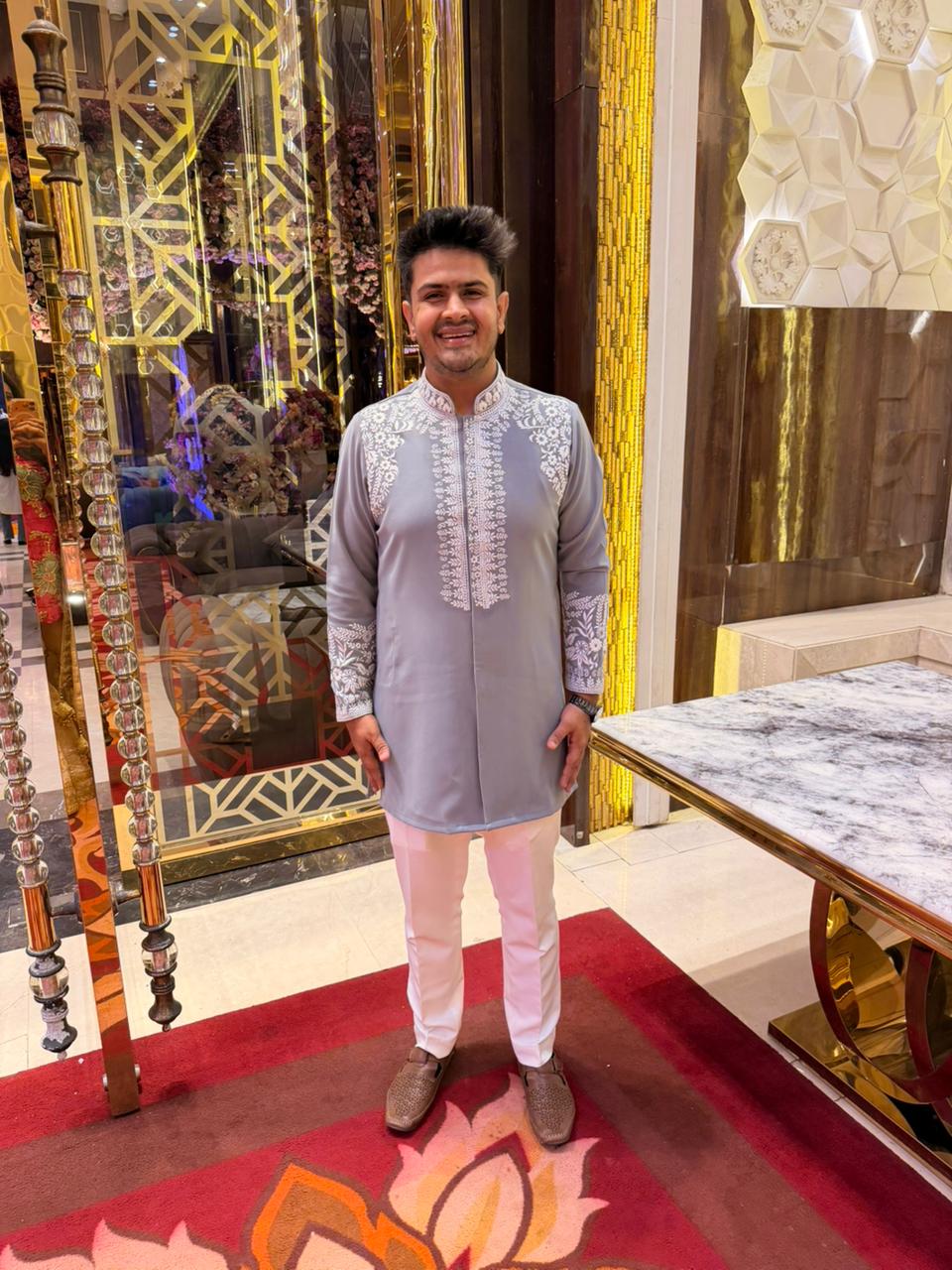 Description ✨Elevate your ethnic charm with this Grey Embroidered Bandhgala Set 💫 featuring intricate white...