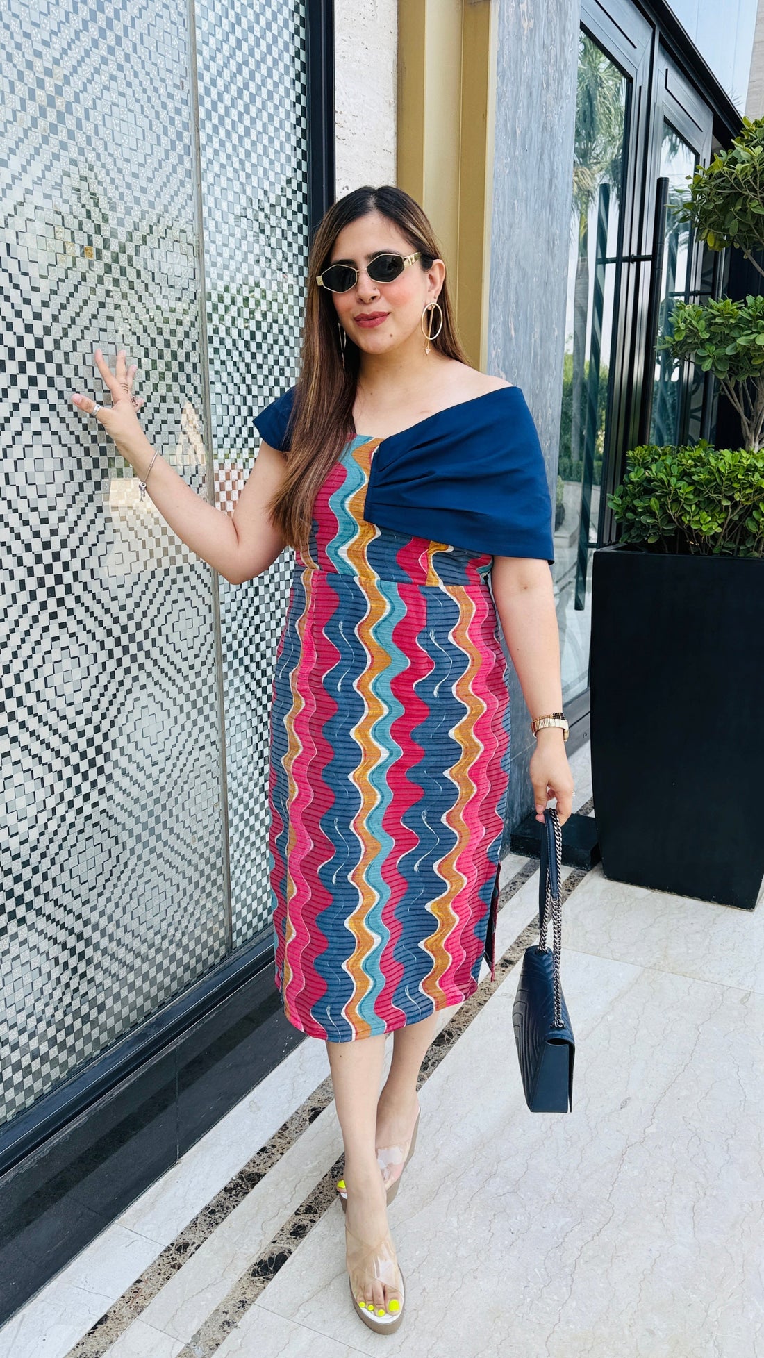 Description Step into playful elegance with the Candy One Shoulder Midi 🌈—featuring vibrant zigzag patterns,...