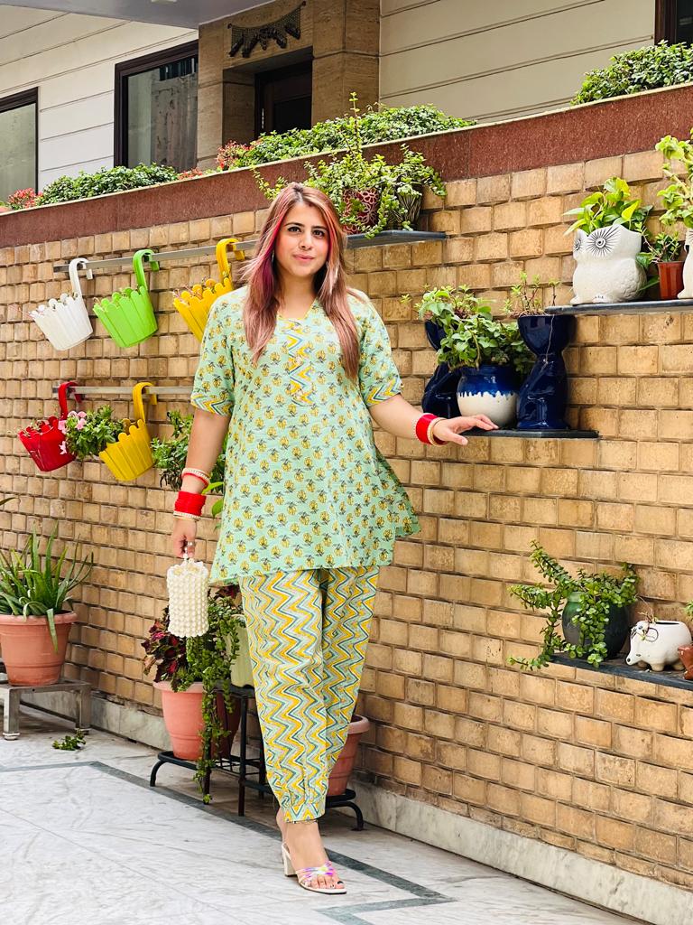 The accurate Co-Ord Set you need for your Daily Summer life. Top Front Neck Style Glass Shape...