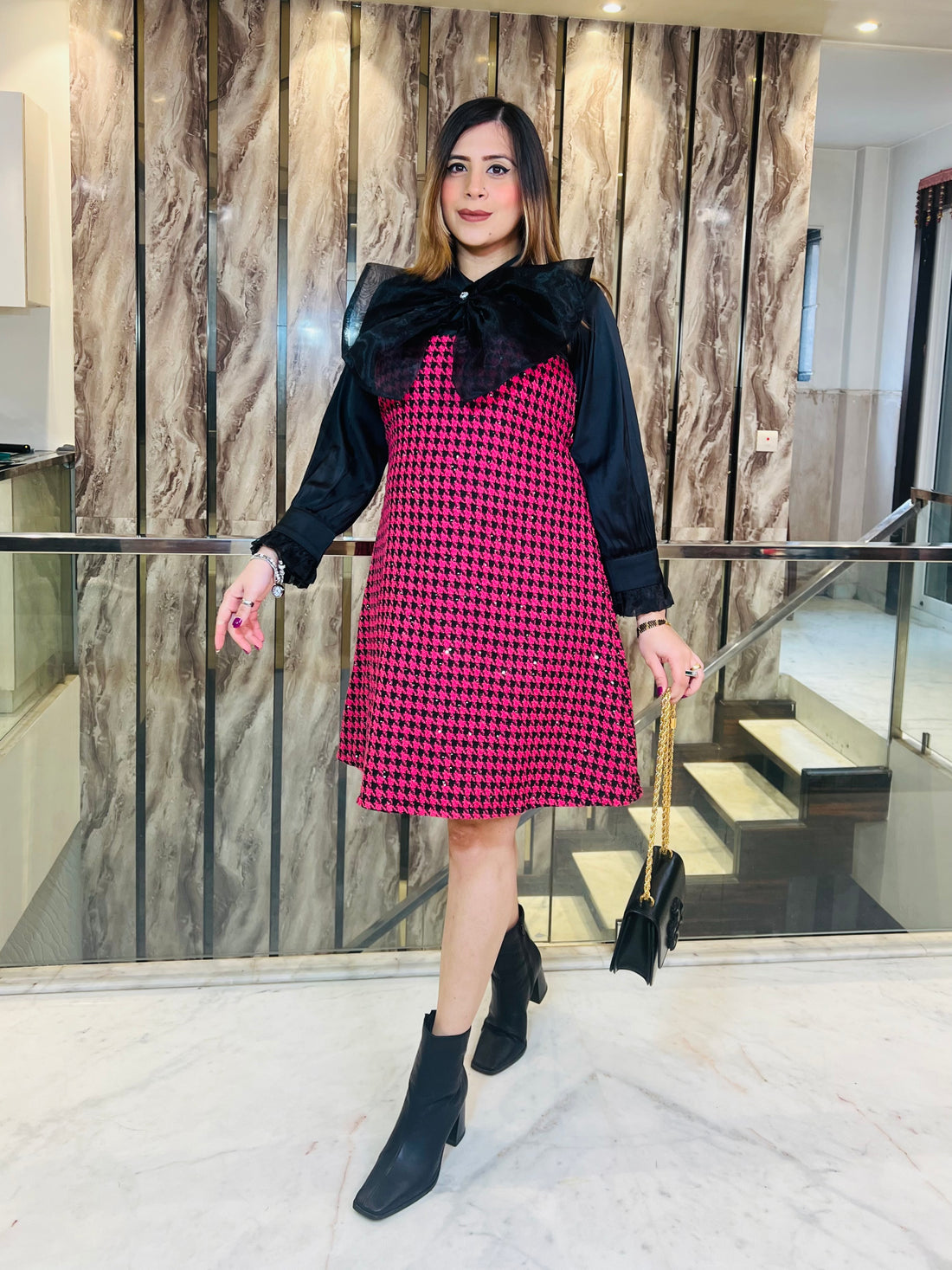 Description Pretty in pink and sophisticated in houndstooth – the Pink Houndstooth Dress is a...