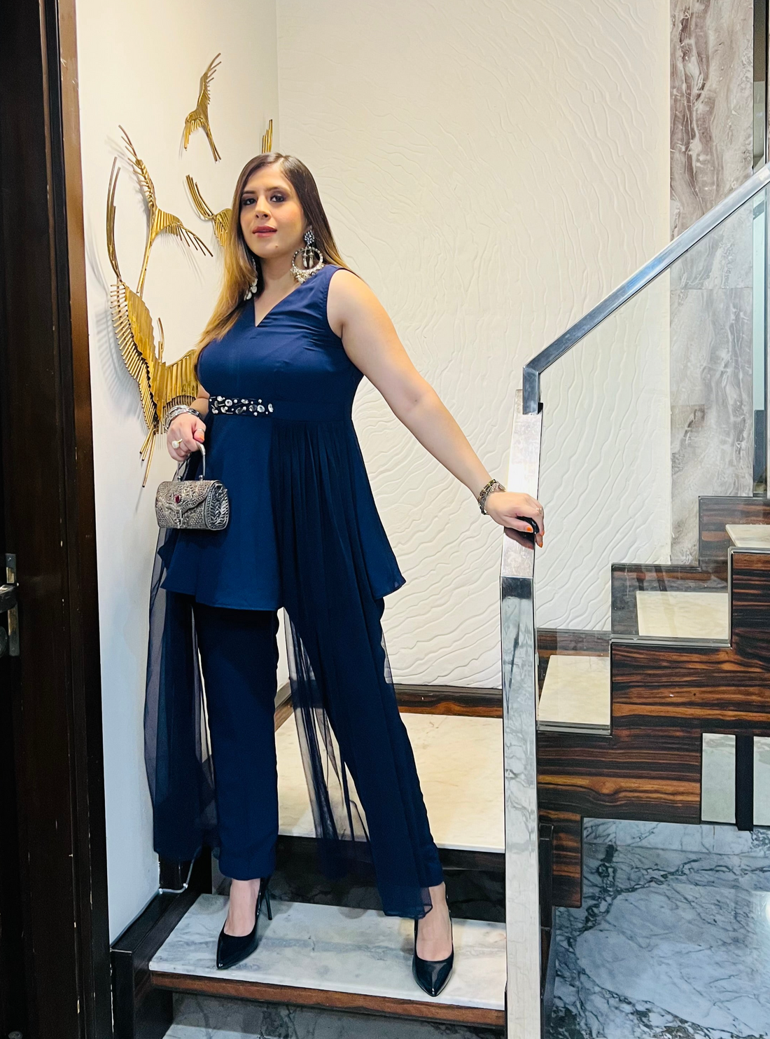 Description "Embrace elegance with the 'Dare to Blue' top! 🌊✨ This chic navy blouse features...