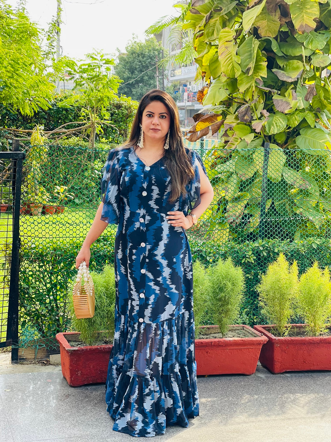 Description Effortless elegance in peach & blue 🍑💙 Embrace nature's beauty with this leaf-inspired midi....