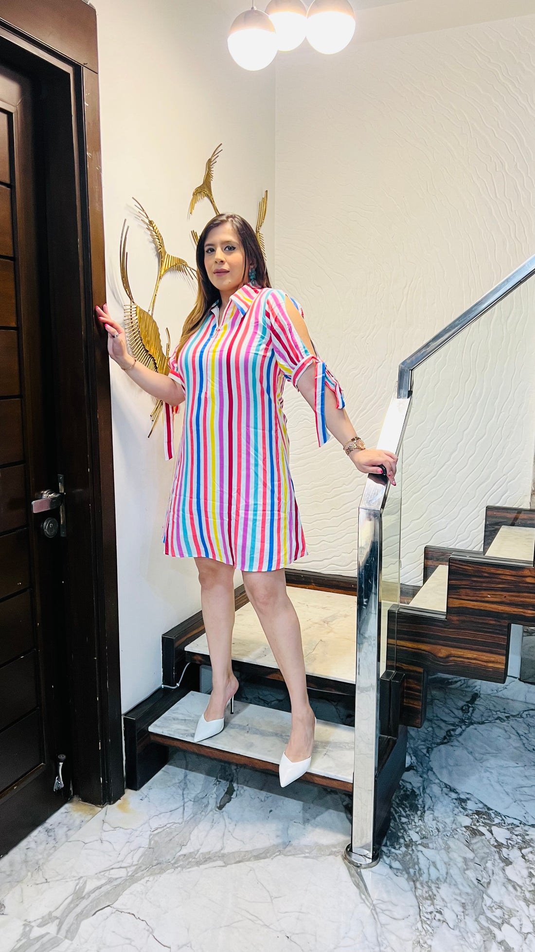 Description "Brighten your day with this vibrant multicolored stripes dress. Perfect for any casual outing,...