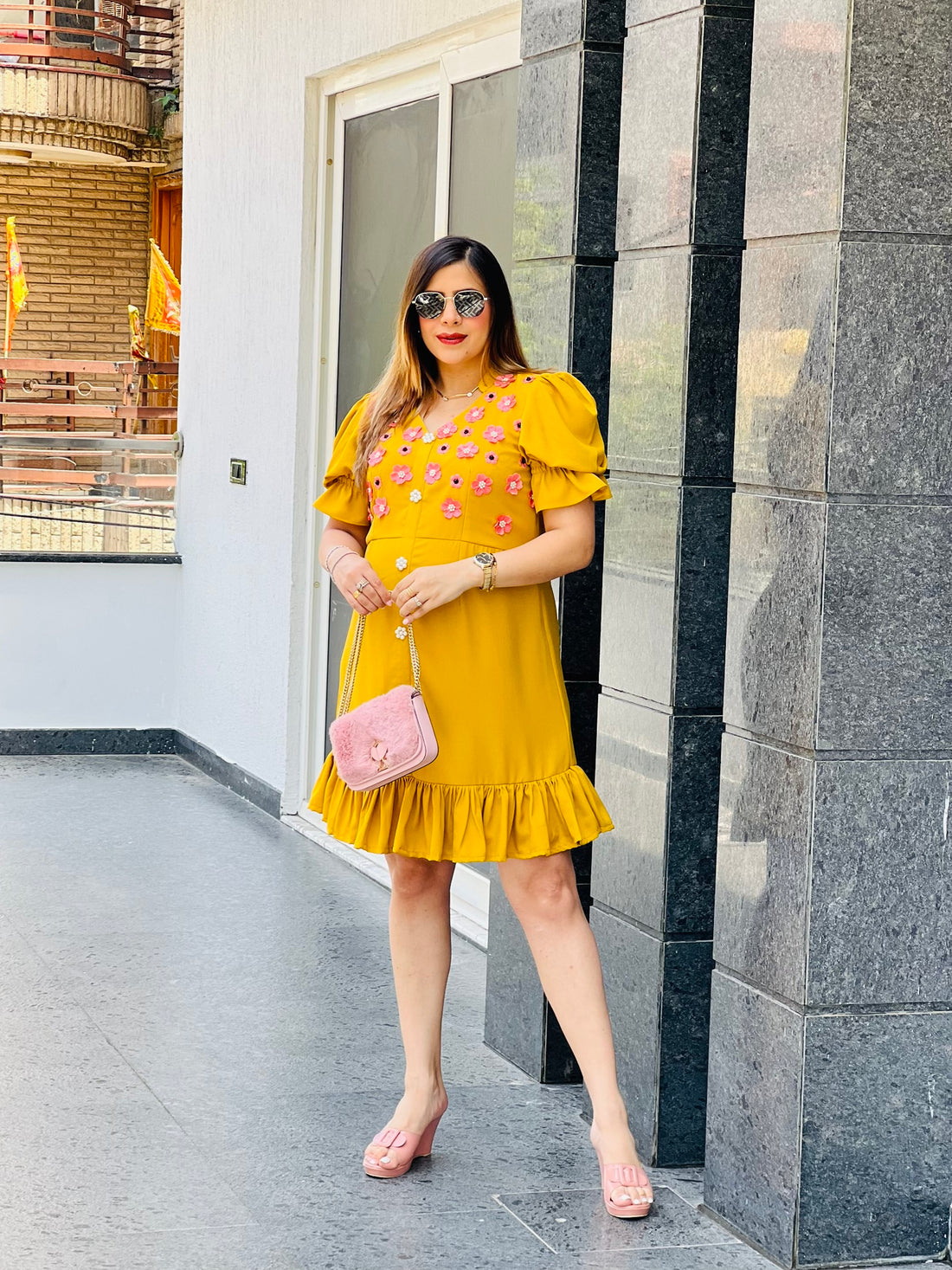 Description Bask in the warmth of sunshine hues with the Yellow Mellow Embroidered Dress, a...