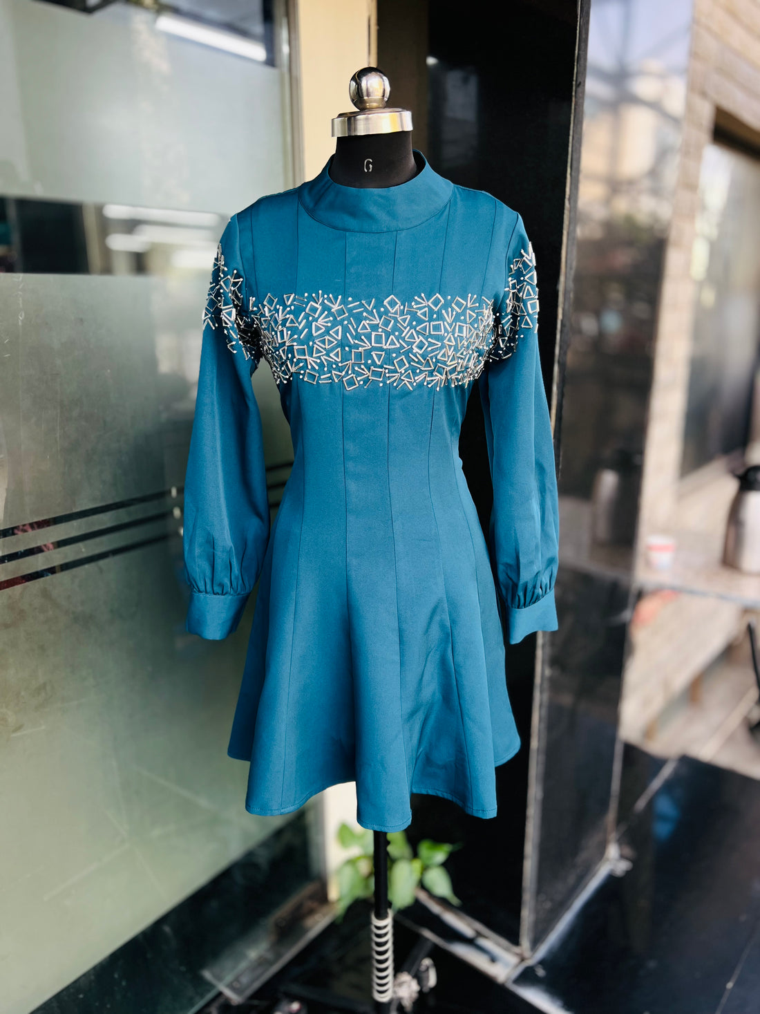 Description Spark up your style with this Electric Blue Cotton Dress, where vibrant color meets...