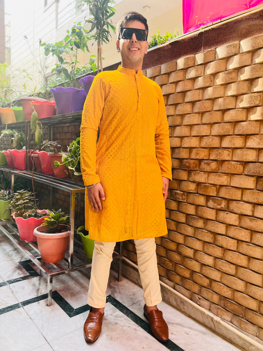 Menswear Yellow Chikankari Kurta