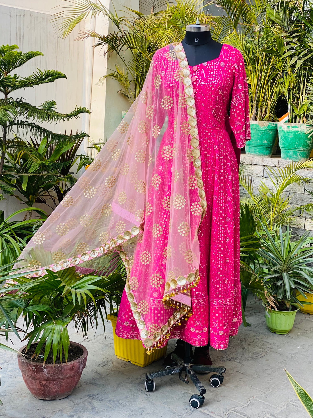 Hot Pink Chikankari Anarkali