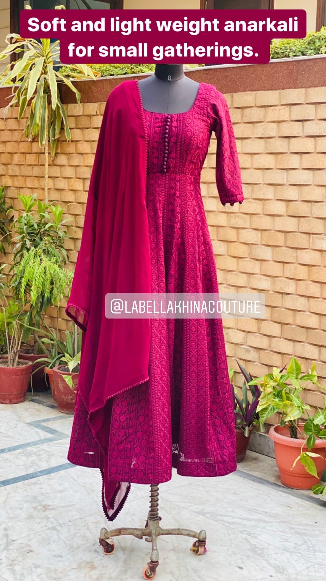 Wine Chikankari Anarkali