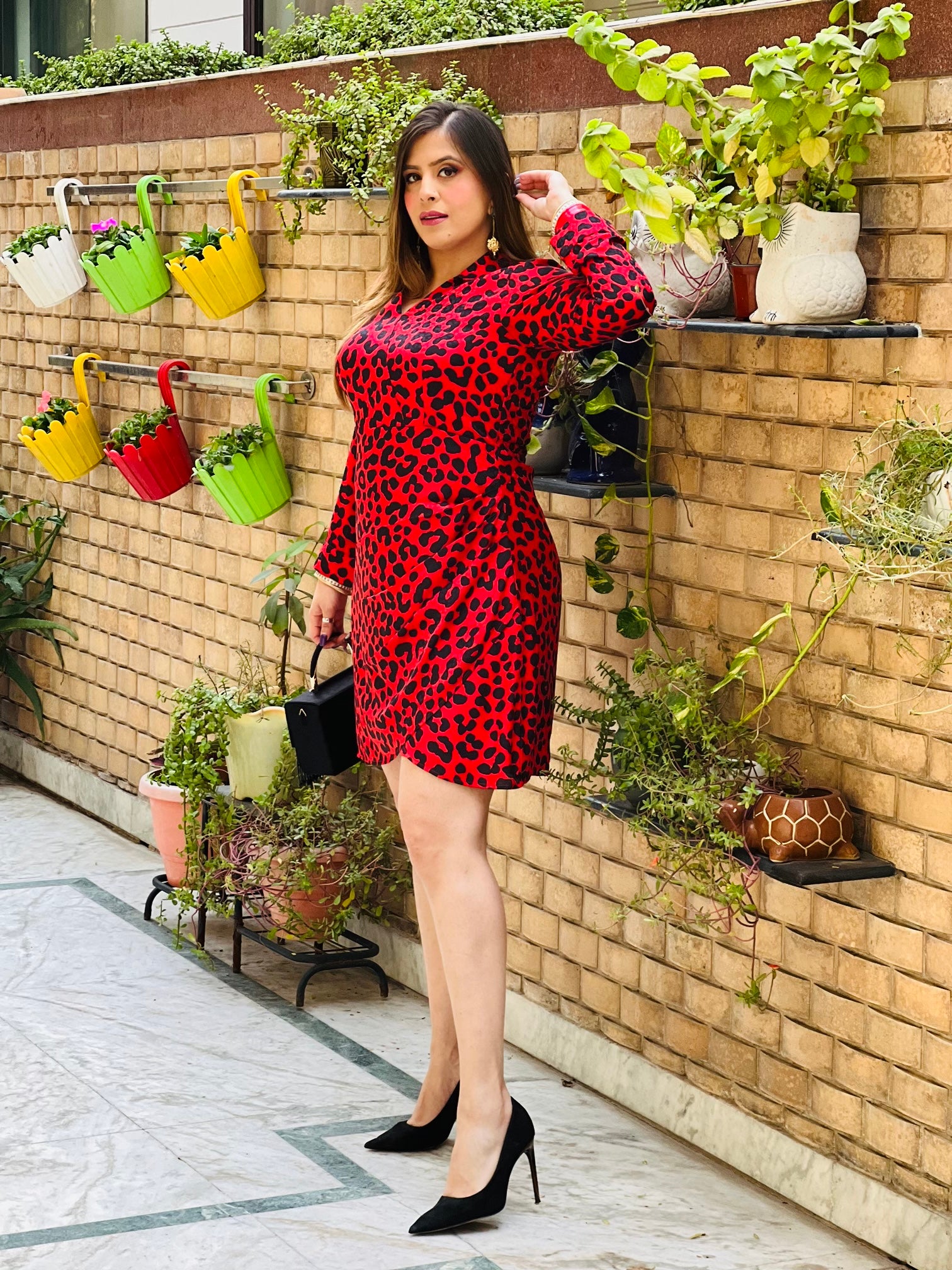 Red Cheetah Drape Shirt Dress