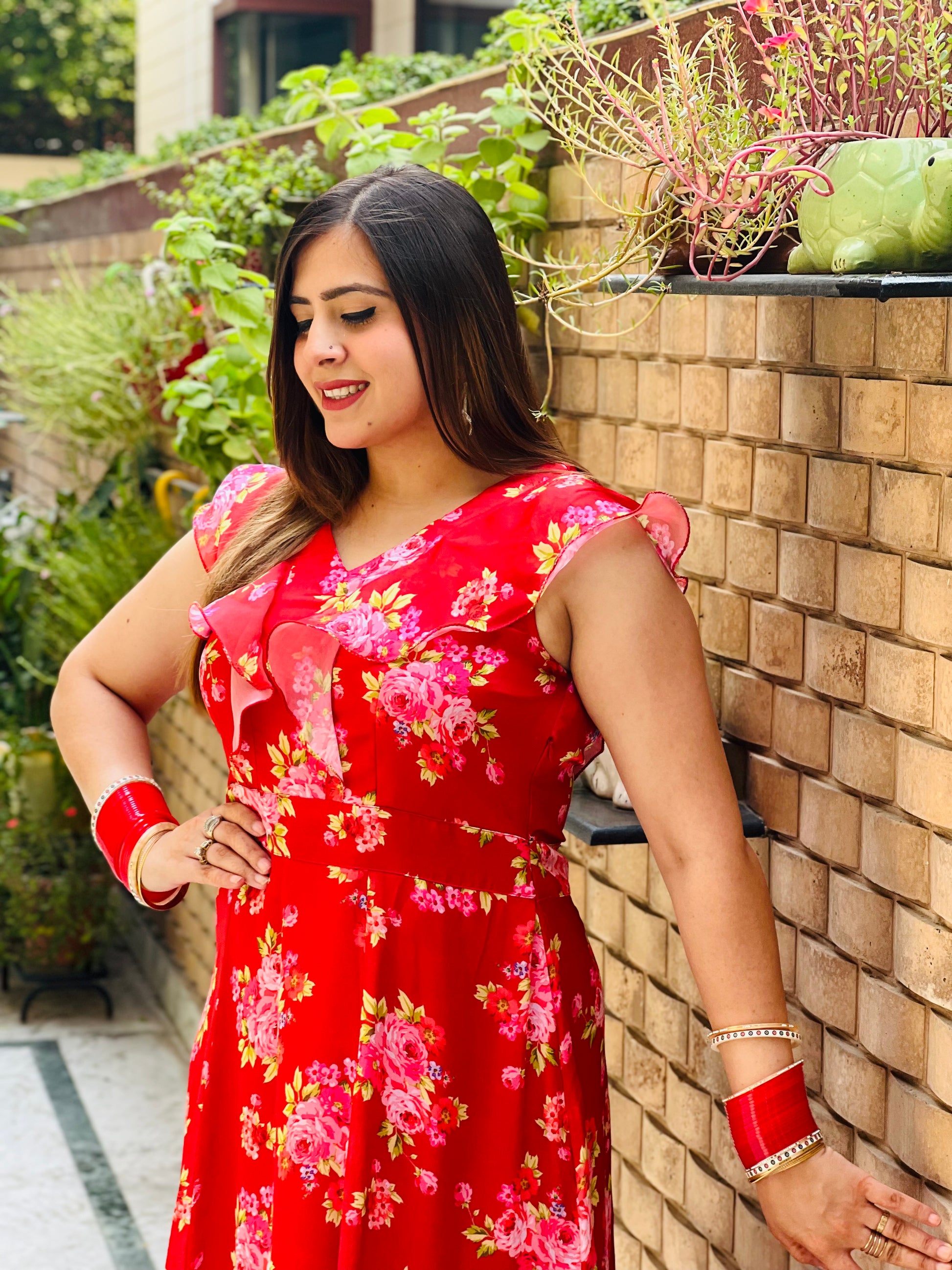 A dress that defines your ravishing interest in quirky prints is this cute maxi dress from the house or LakhinaCouture