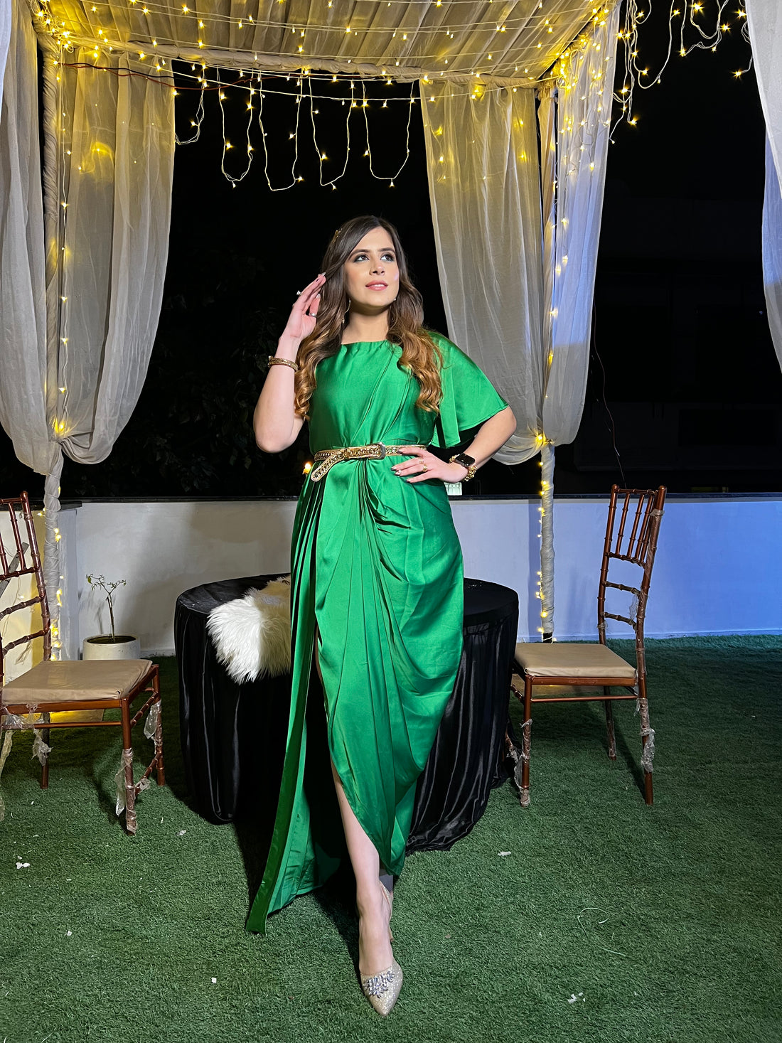 Wearing a gorgeous drape dress curated in Italian satin fabric brought to you in many...