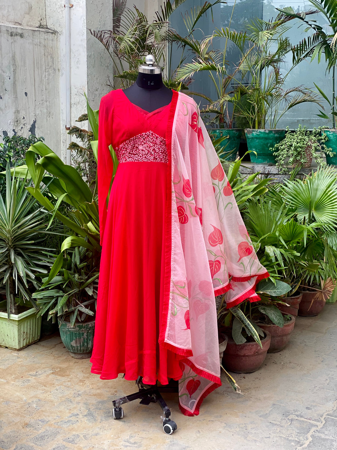 Anarkali for all your occasions & festivities.Curated in a beautiful Red shade that makes you the...