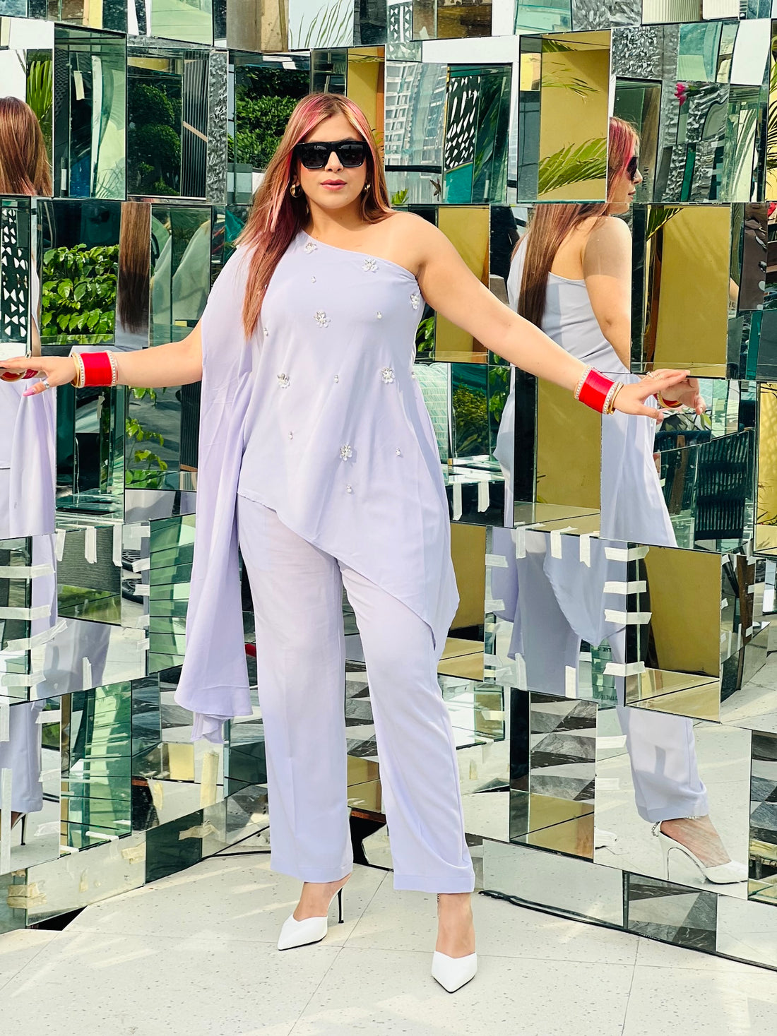 The accurate Co-Ord Set you need for your Party life. Top  Front Neck Style  One Shoulder...