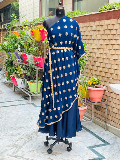 Contemporary fashion for karvachauth 2021.Kaftaan + anarkali.Anarkali is curated in pure georgette fabric.Colours available.Customisations possible....