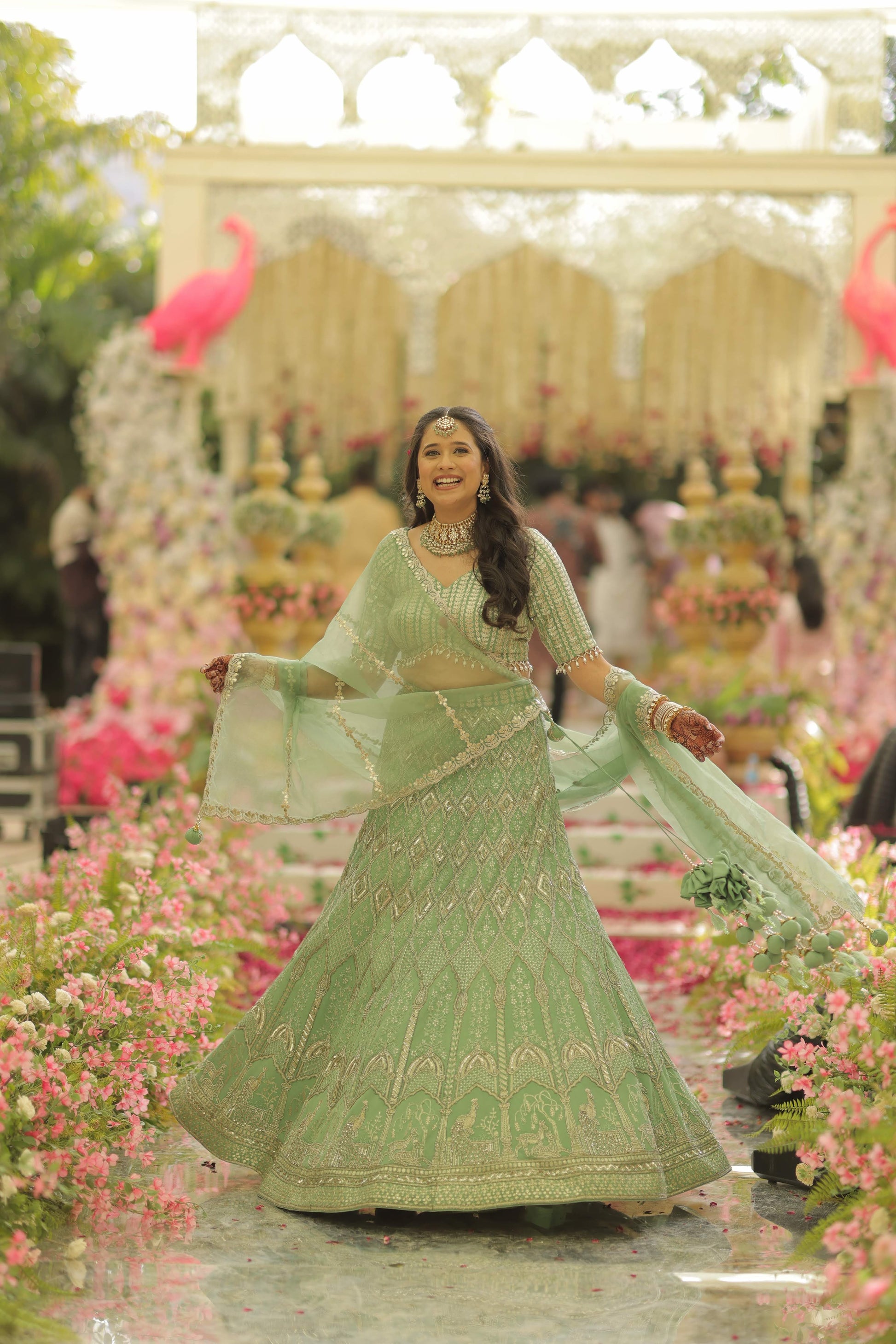 Sage Green Bird Lehenga