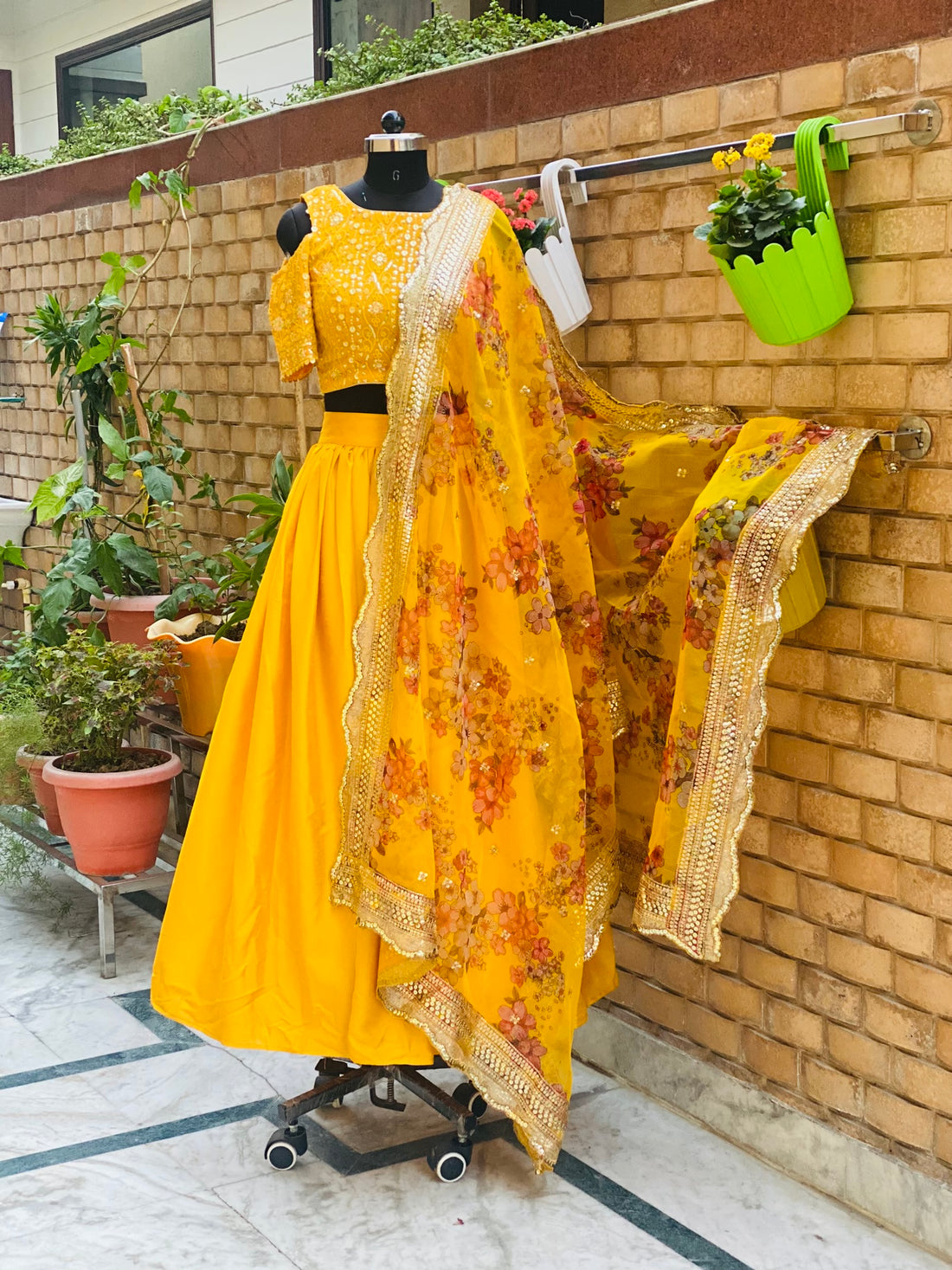 Yellow for wedding season.Bright and beautiful for you prettiest ladies’ out there!Can can attached for flare.Georgette...