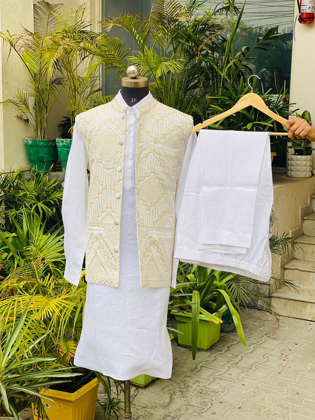 Description Radiant sunshine meets pure elegance in this yellow and white kurta set, a vibrant...