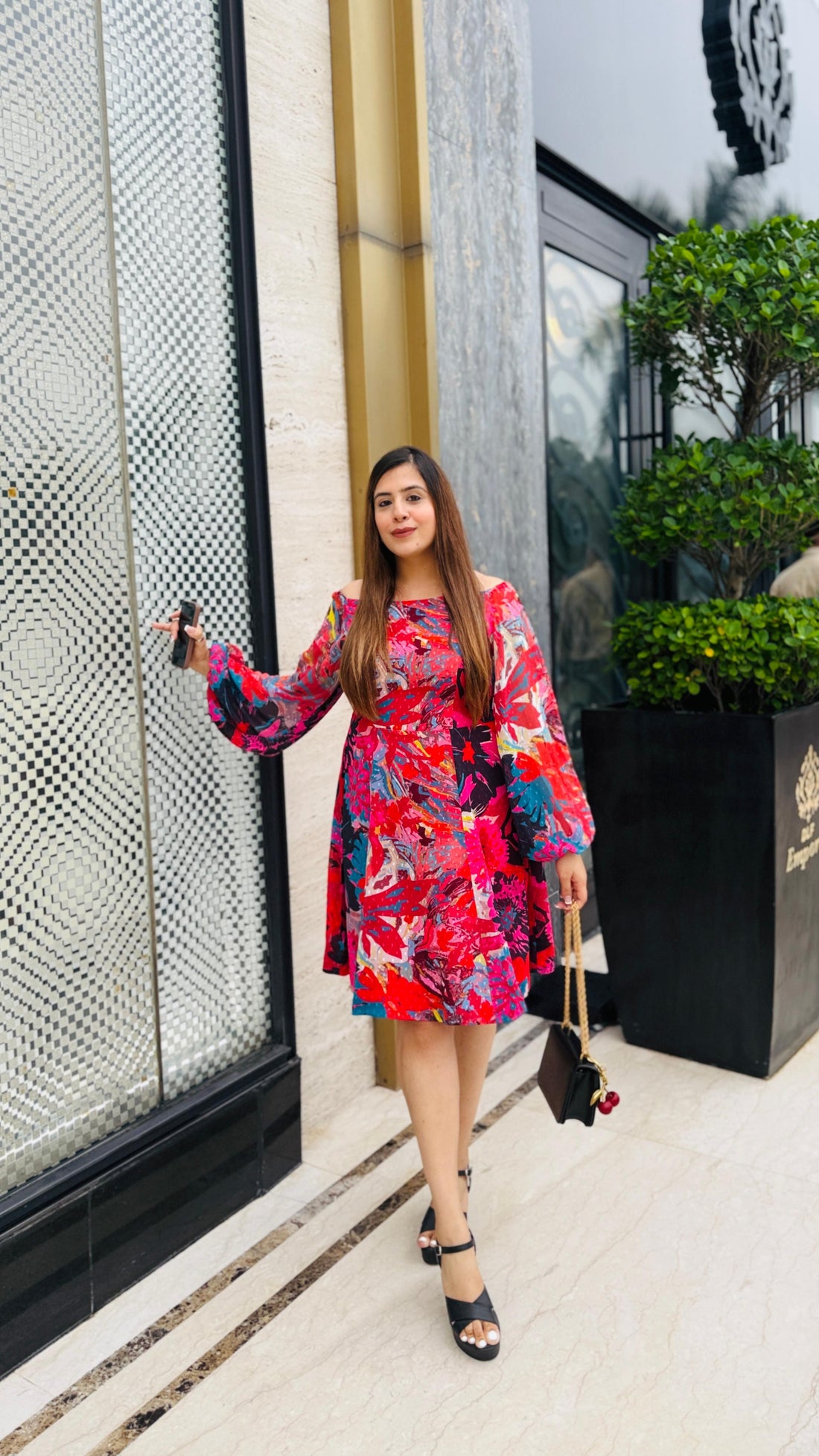Description 🎨 The Picasso Red Dress ❤️ blends vibrant abstract prints with bold hues, featuring...