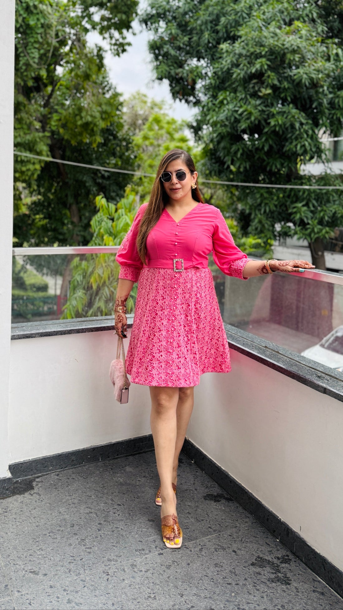 Description Turn heads in our Spicy Pink Crochet Dress 🌸💖 — featuring a belted waist,...