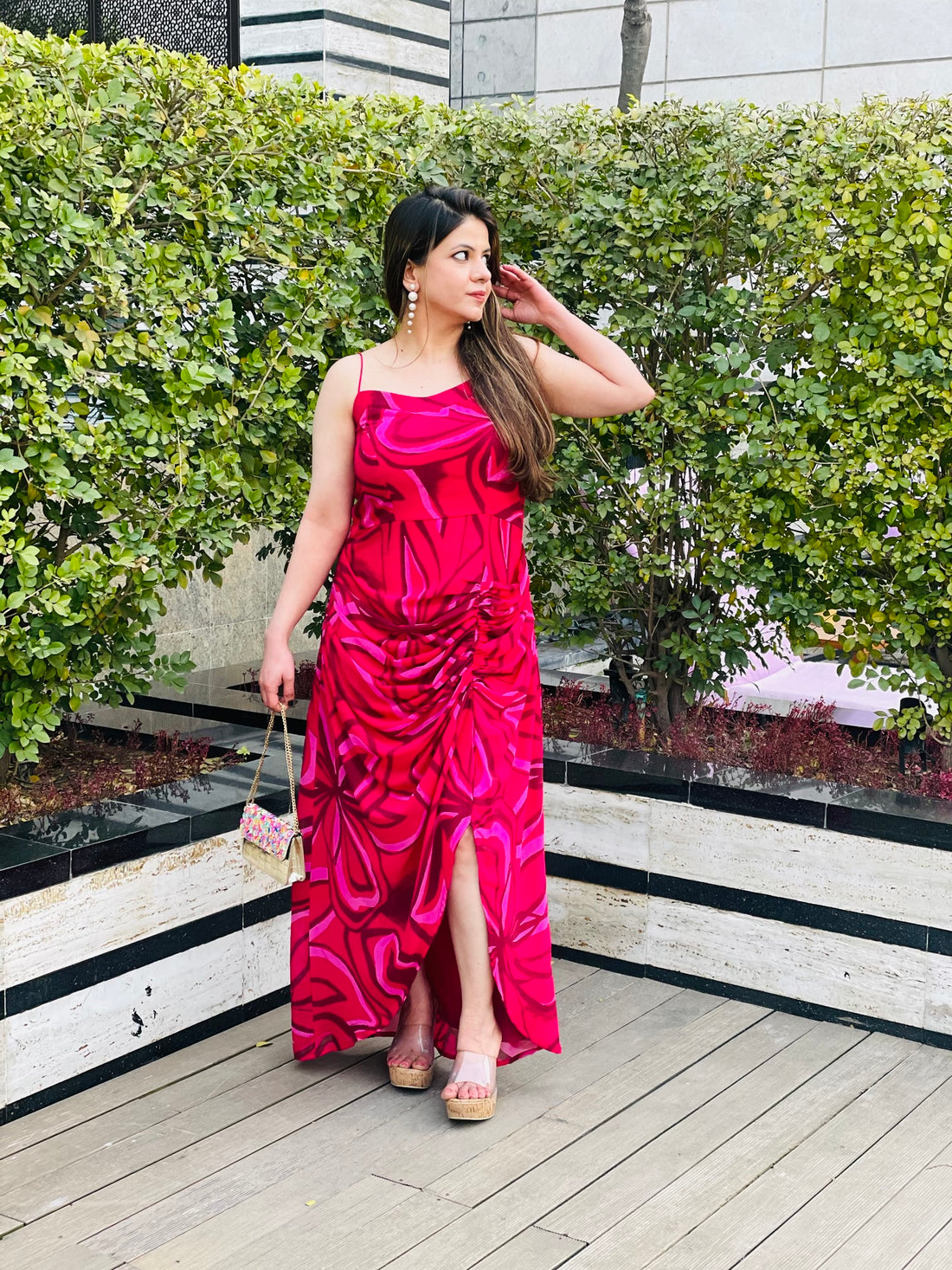 Description Step into the spotlight with the Hot Pink Drape Midi – a glamorous fusion...