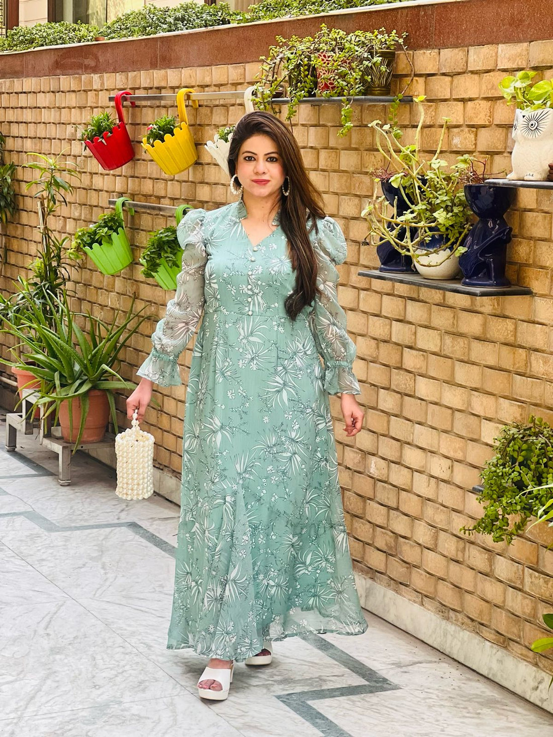 Description Radiate natural charm in the Sage Green Dandelions Maxi, a botanical beauty that blooms...