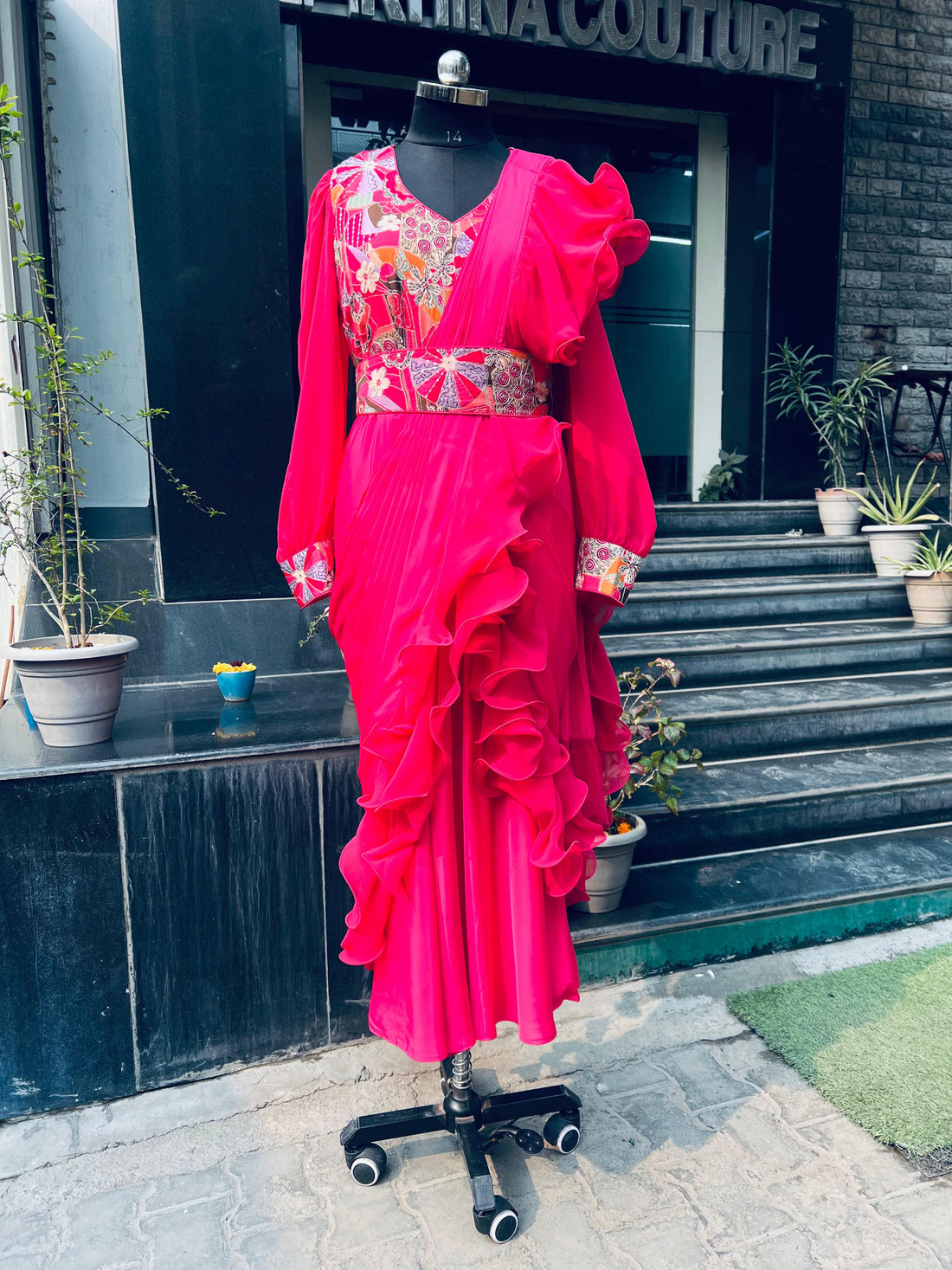 Description Turn heads and steal hearts in the spirited allure of the Carrot Carnival saree...