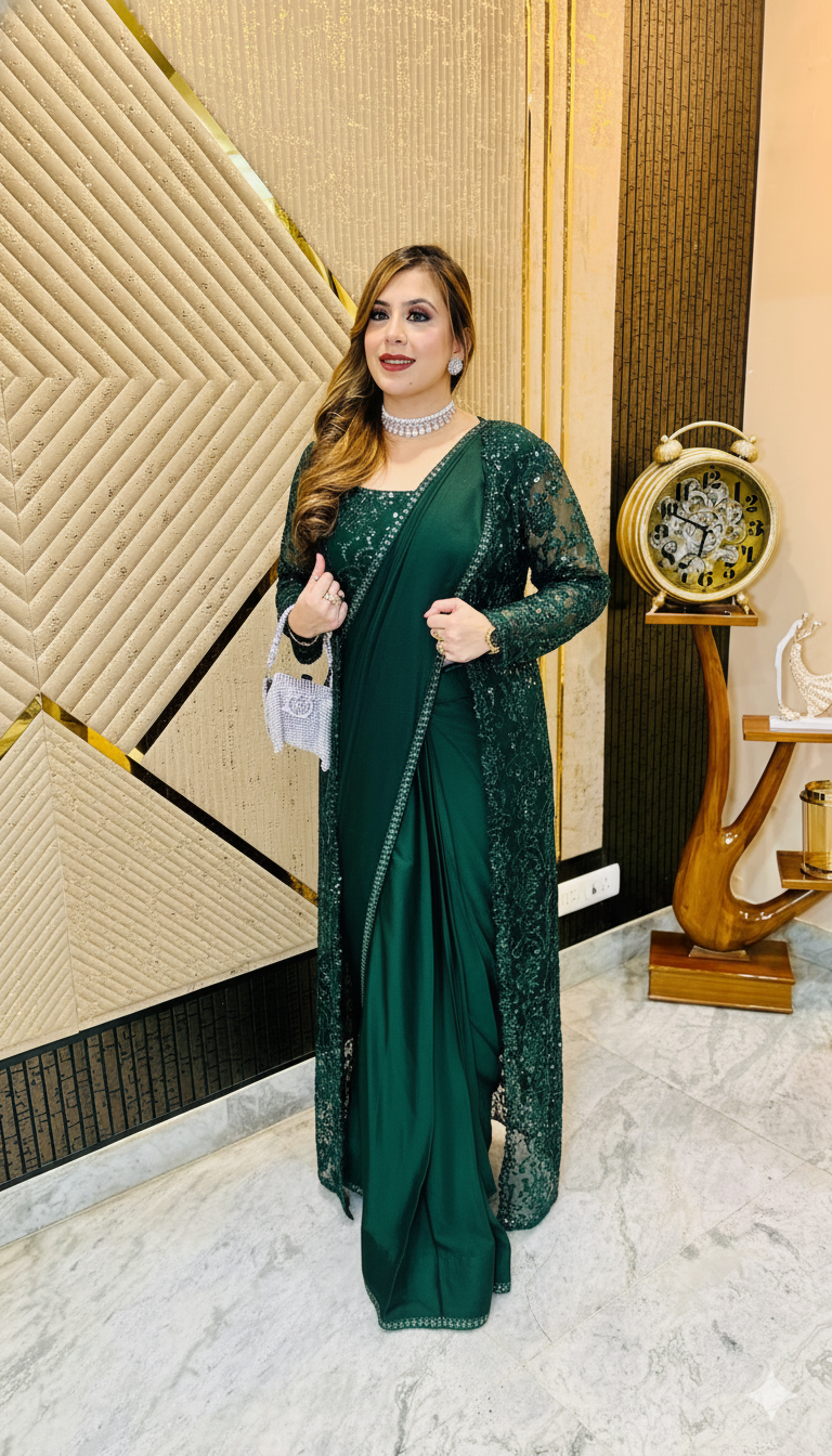 Green Paradise Shrug Saree