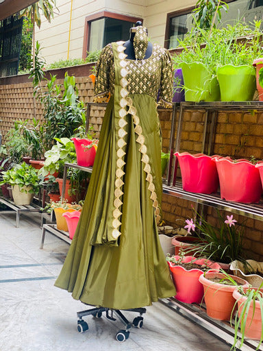 Olive Green Embroidered Drape