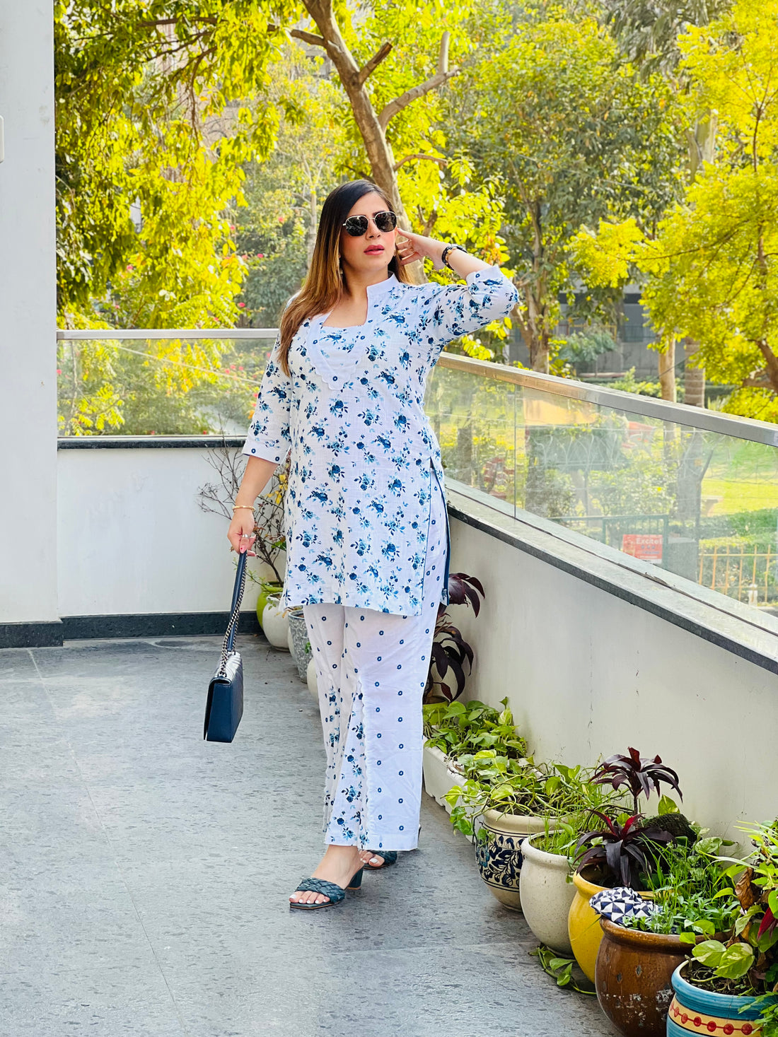 Description Step into seaside sophistication with this White & Blue Diva co-ord set, a stylish...