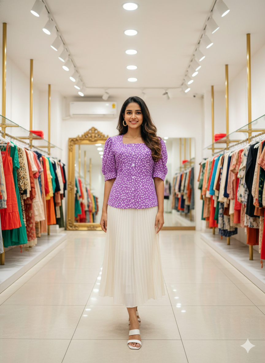Description "🌸 Elevate your wardrobe with the Lilac Breeze Button-Up! This chic top features a...