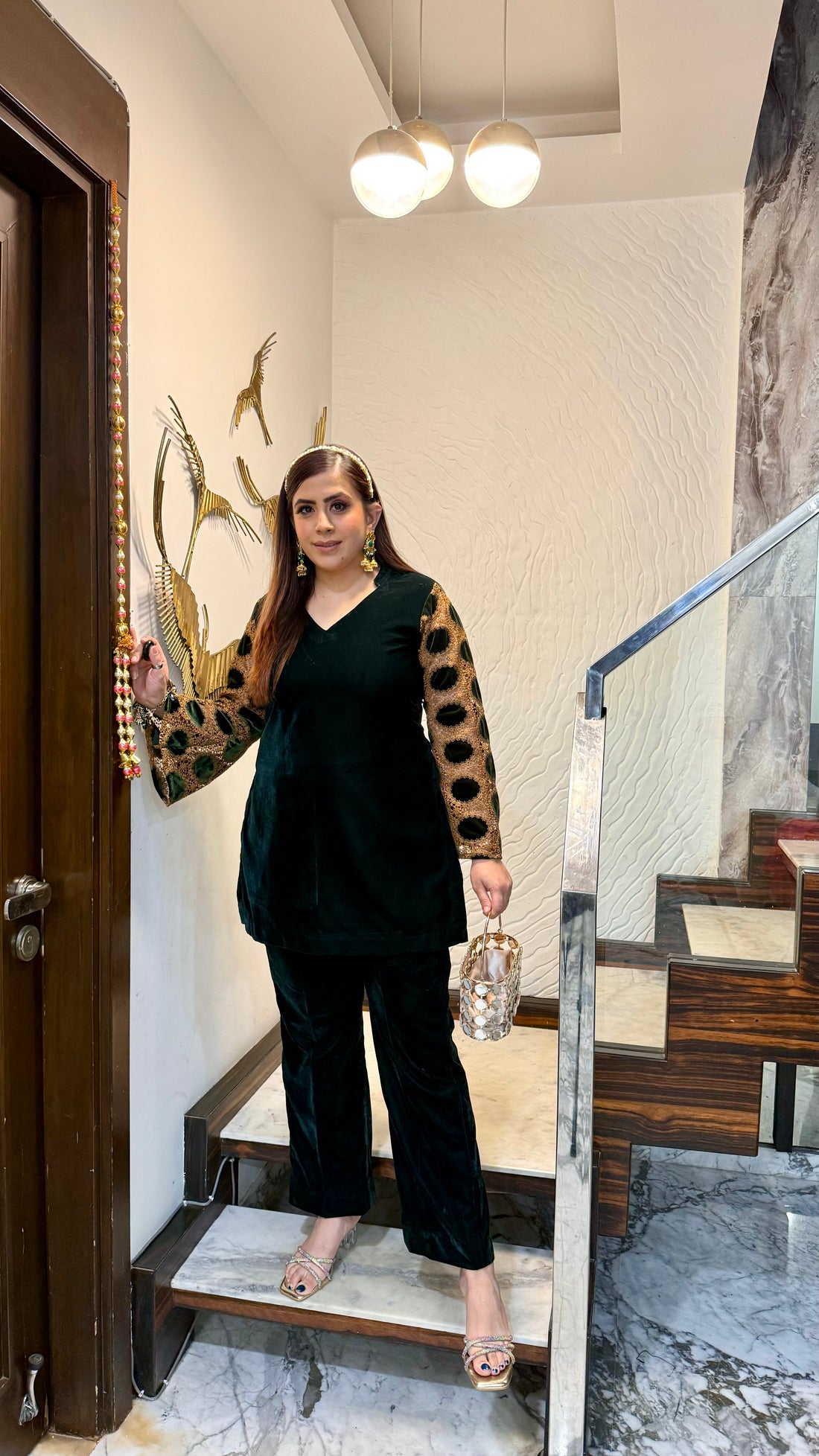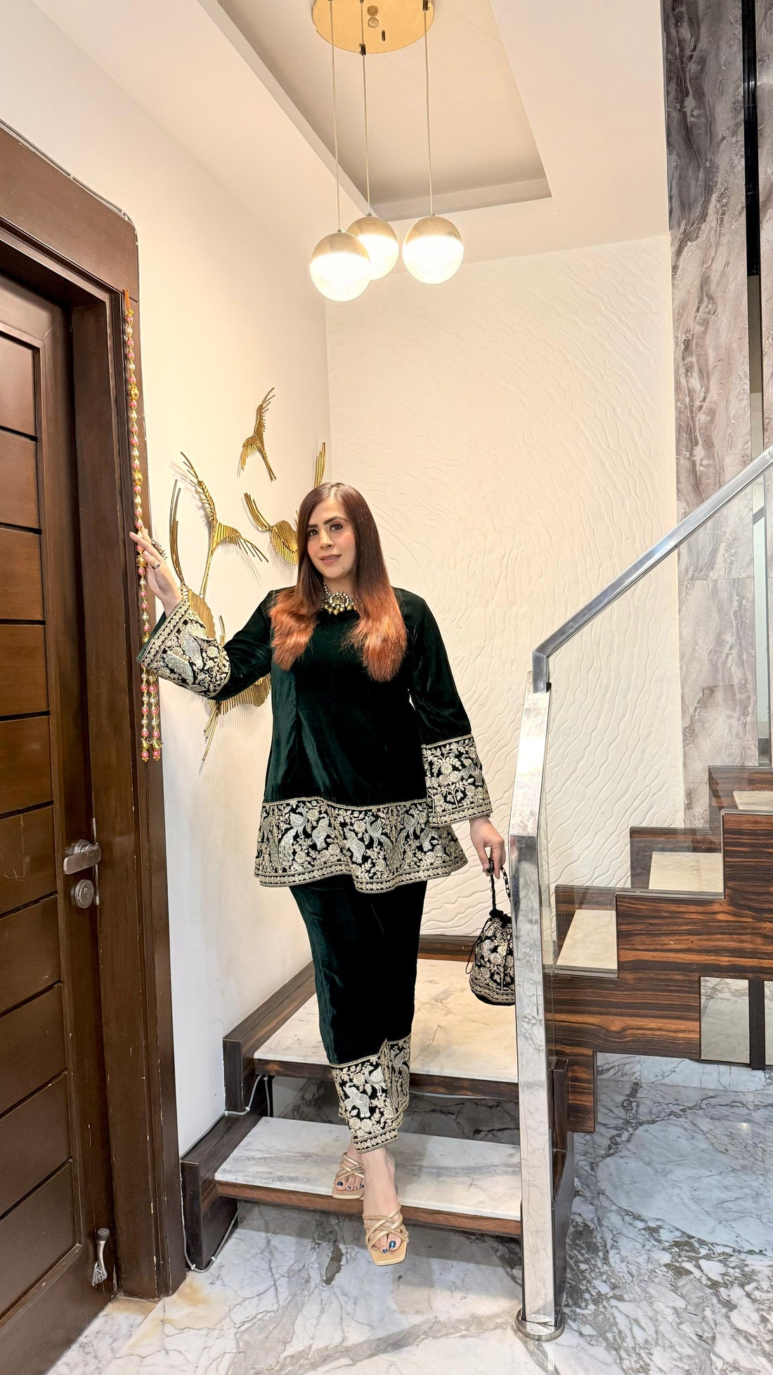 Description This elegant Green Velvet Co-Ord set 🖤 features intricate golden embroidery ✨ paired with...