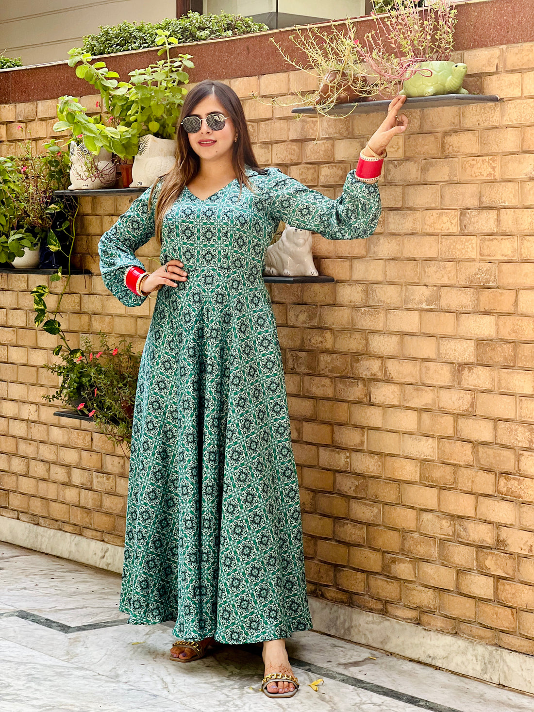 Green Ruffled Maxi Dress