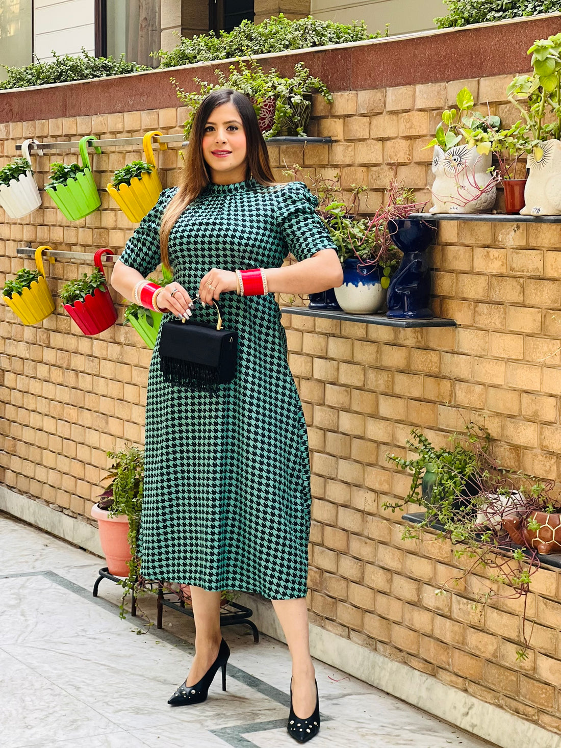Description Green checks, midi vibes, and a touch of glamour – the perfect equation! 💚🌟...