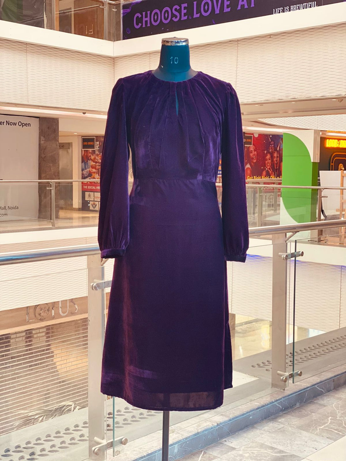 Description Radiant Versatile Velvet Midi Dress with full Puffy sleeves and a crew neckline. Paired...
