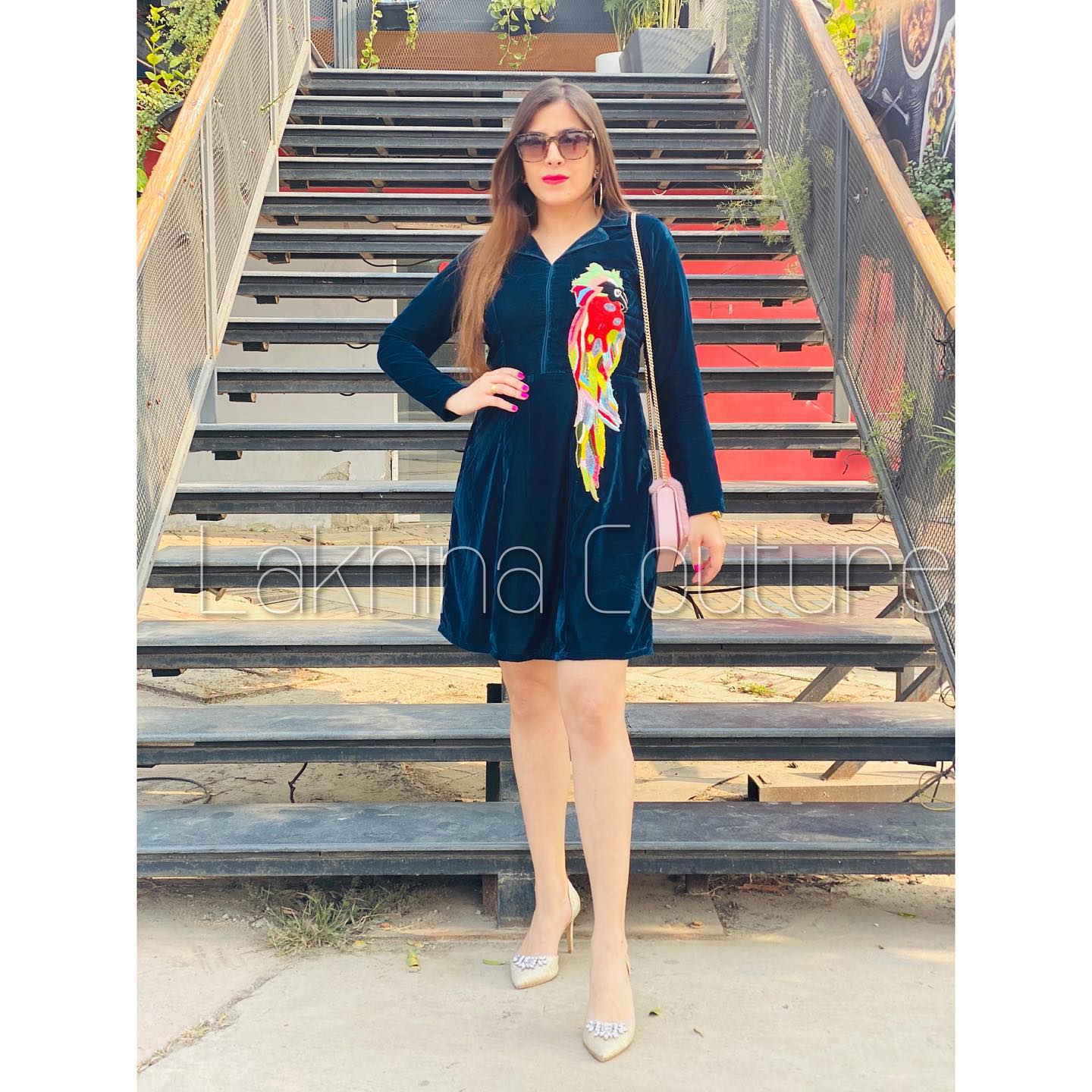 | Description | Fall in love with our Peacock Green Velvet Dress. Crafted from premium 9000-quality micro velvet, this V-neck A-line silhouette features exquisite bird embroidery and a sophisticated collar. The perfect party-wear piece for your next romantic dinner date. |