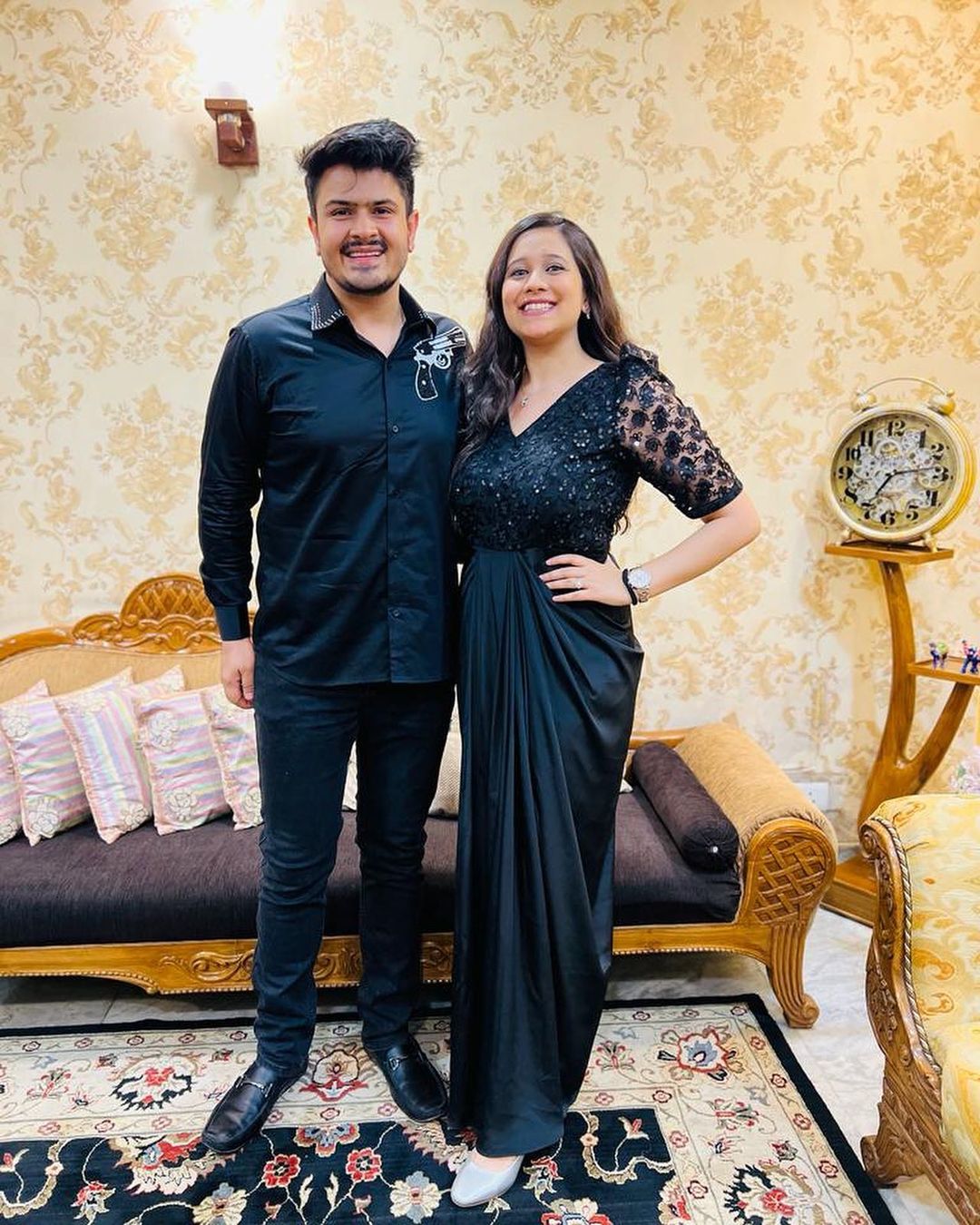 Wearing a gorgeous drape dress curated in Deigner Sequin Net + French Crepe fabric brought to you in many more colours! |