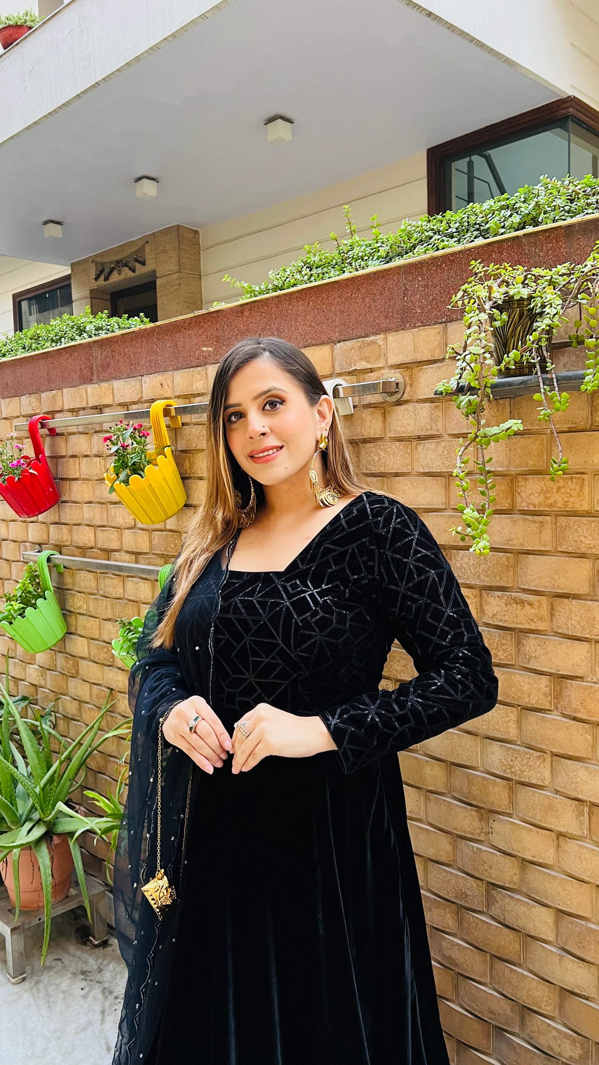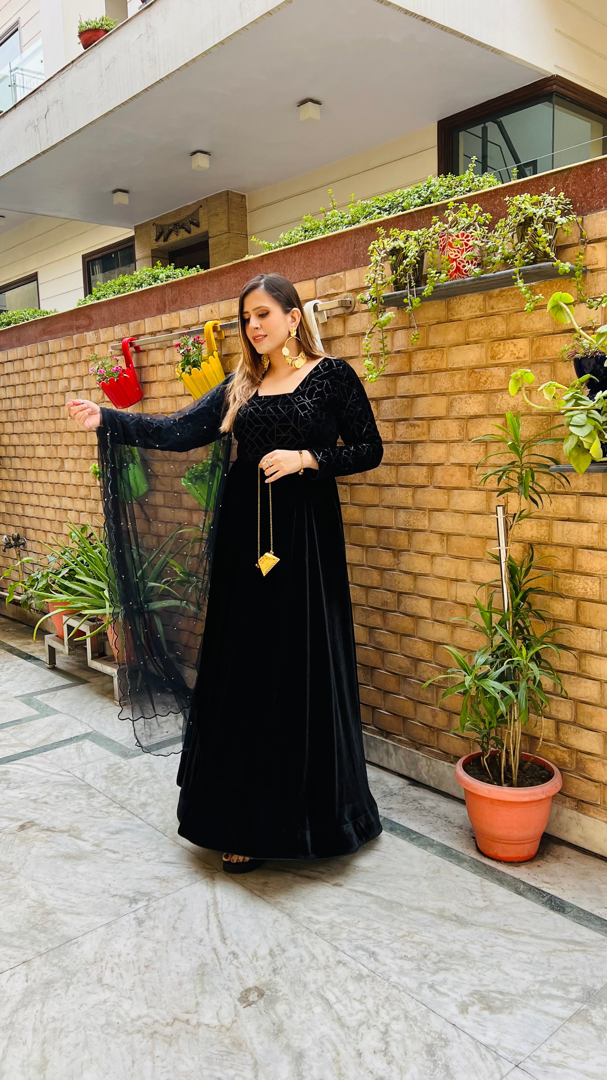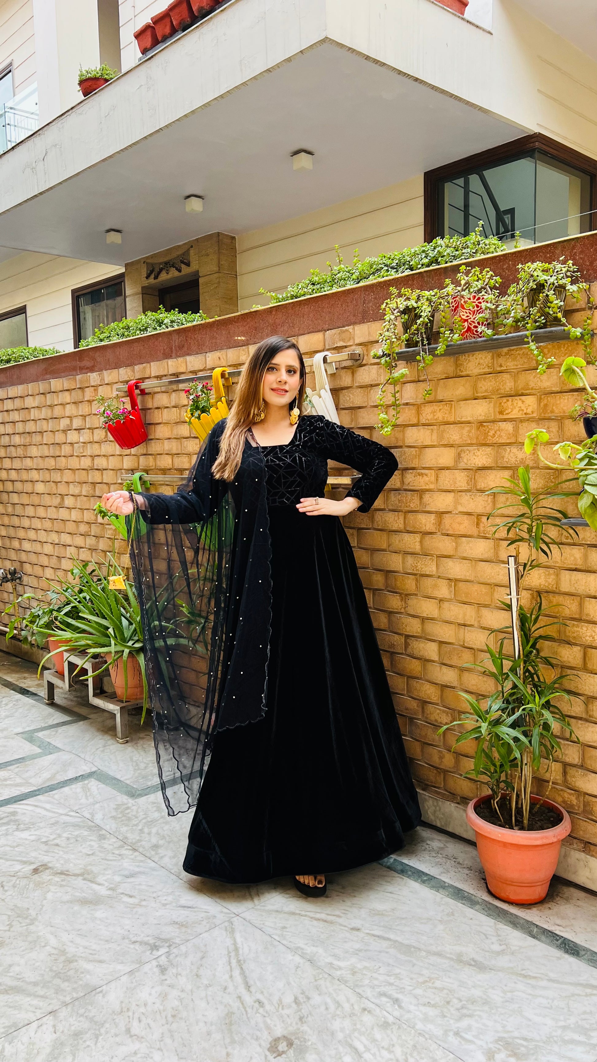 Velvet for Anarkali & Net for Dupatta |