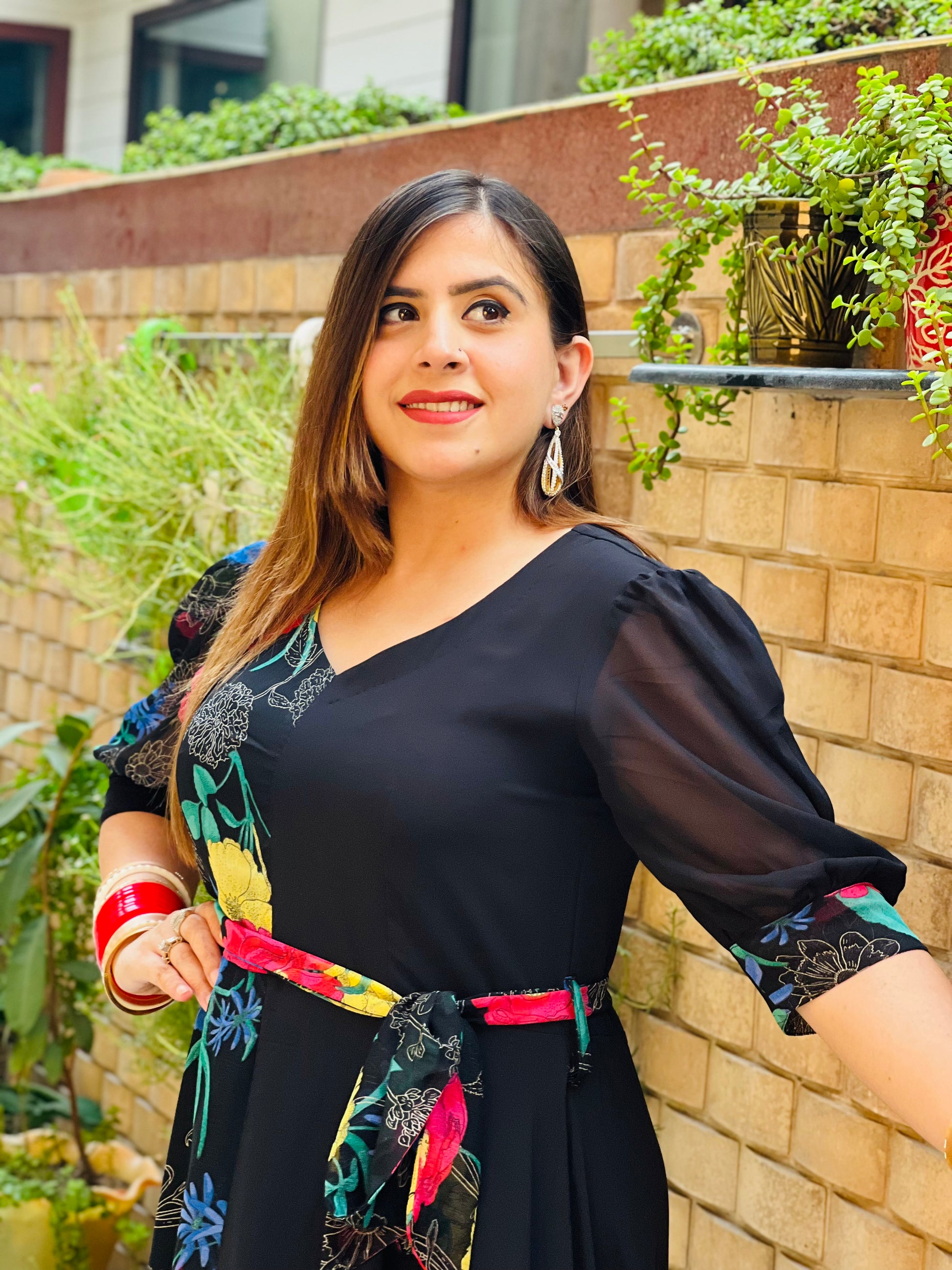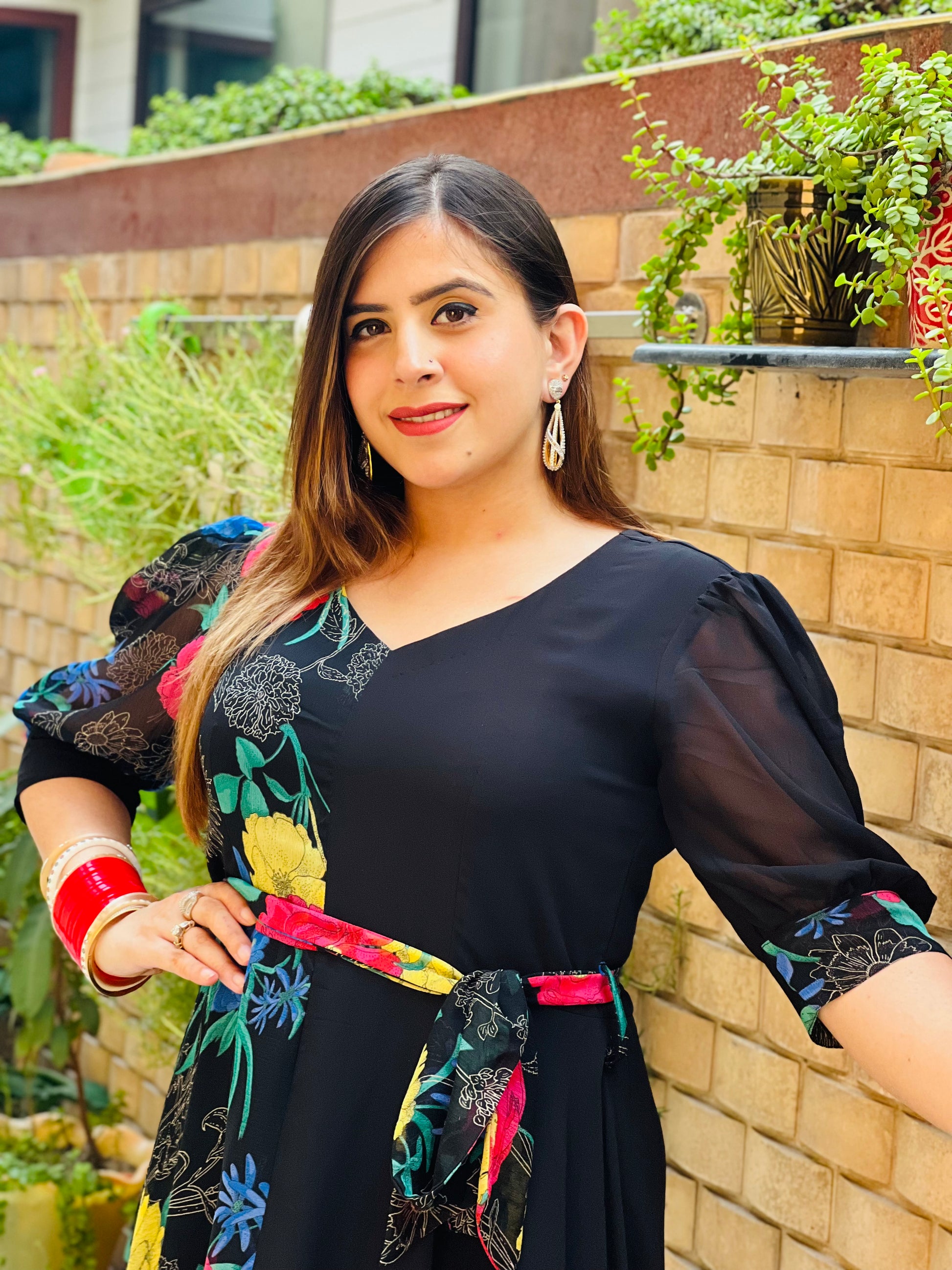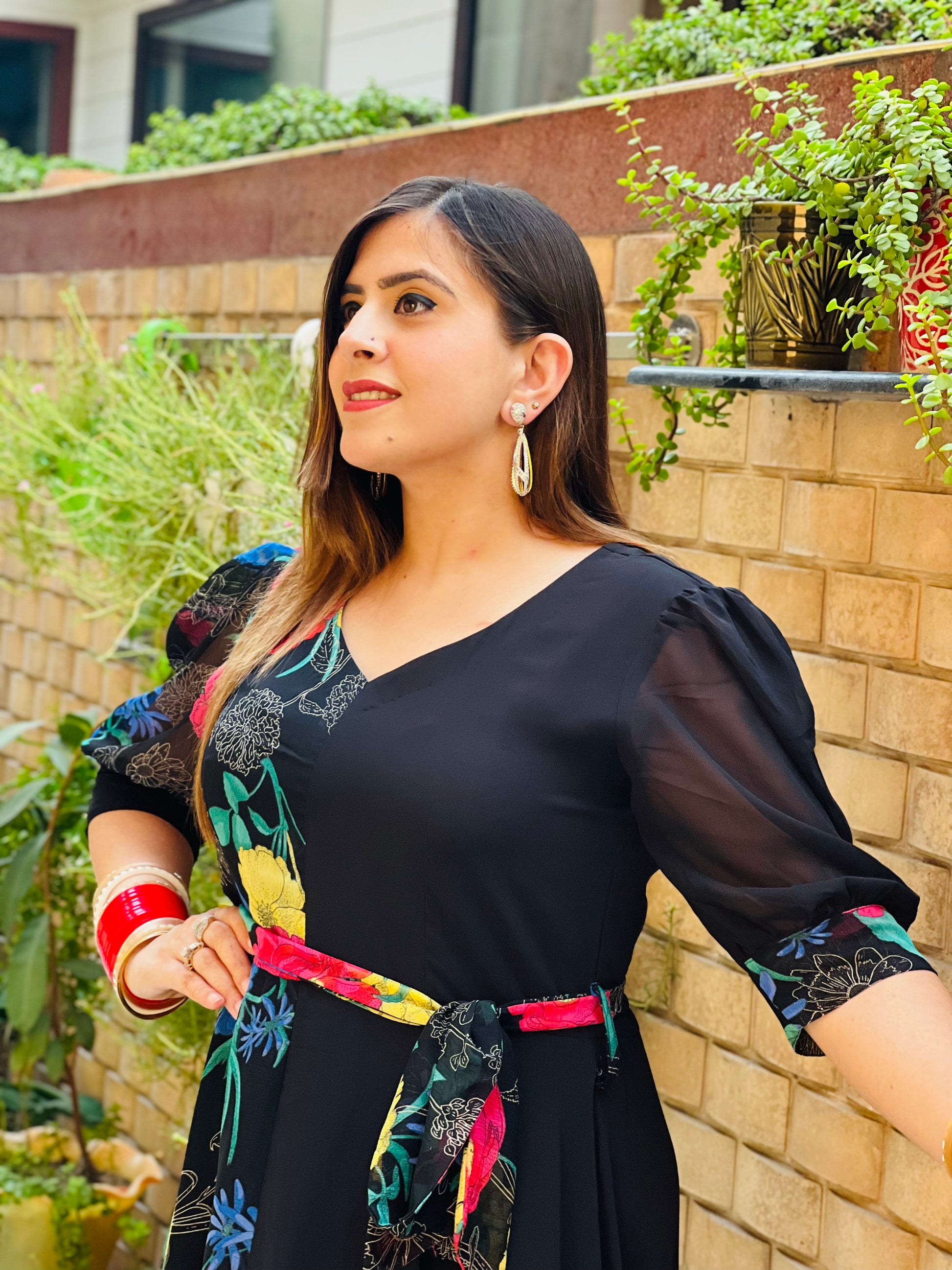 Pull together a chic and stylish look when you style yourself in this beautiful maxi by @labellakhinacouture A unique design with our favorite black tone, this Maxi will definitely fetch you a lot of second glances with its best of fit and comfort Aligned with Shantung lining! This attractive Maxi is definitely the flavor of the season and will give your image an all new makeover Georgette fabric.