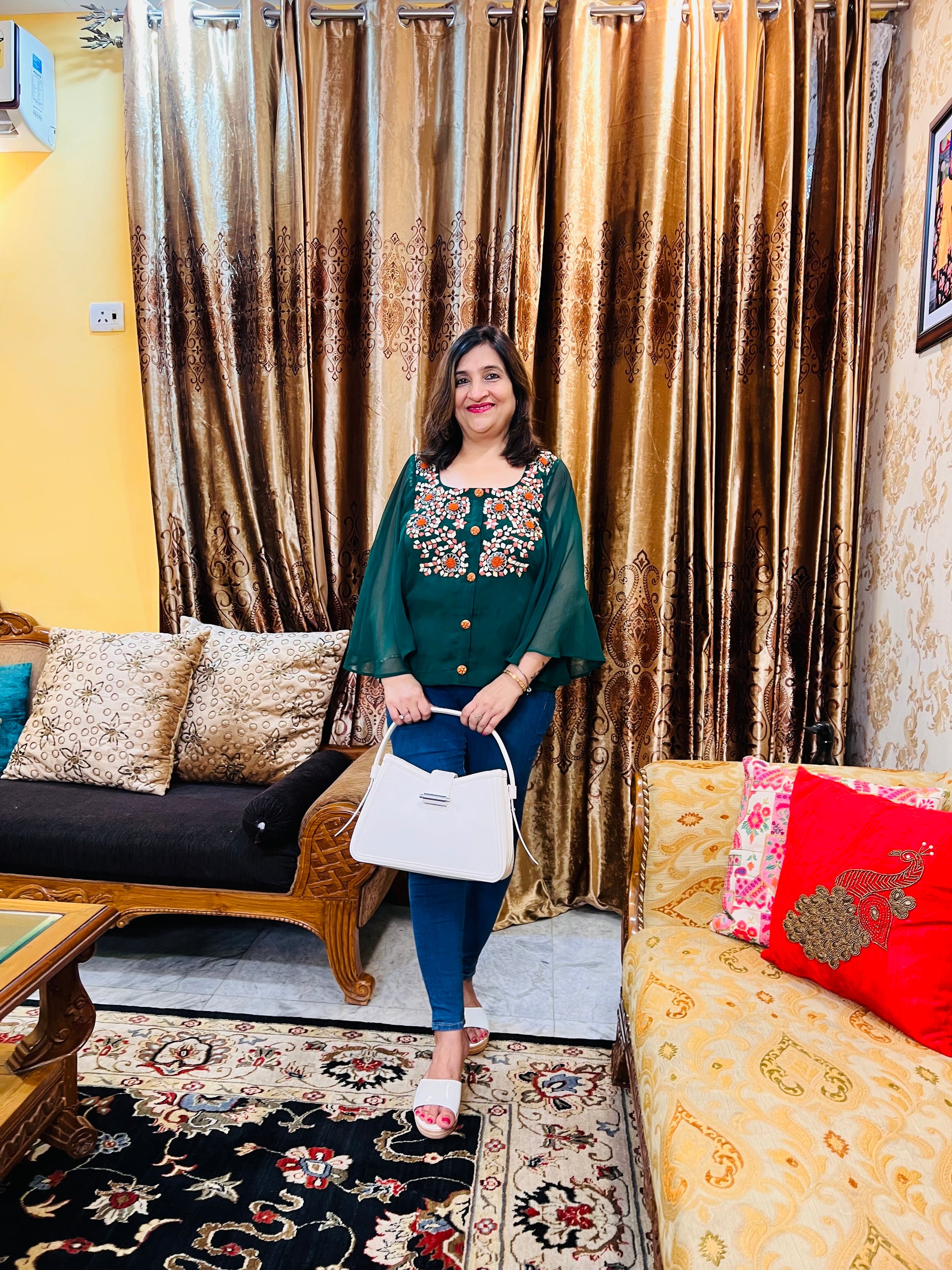 Wearing a classic hand embroidered shirt for a fancy dinner evening with my girls.