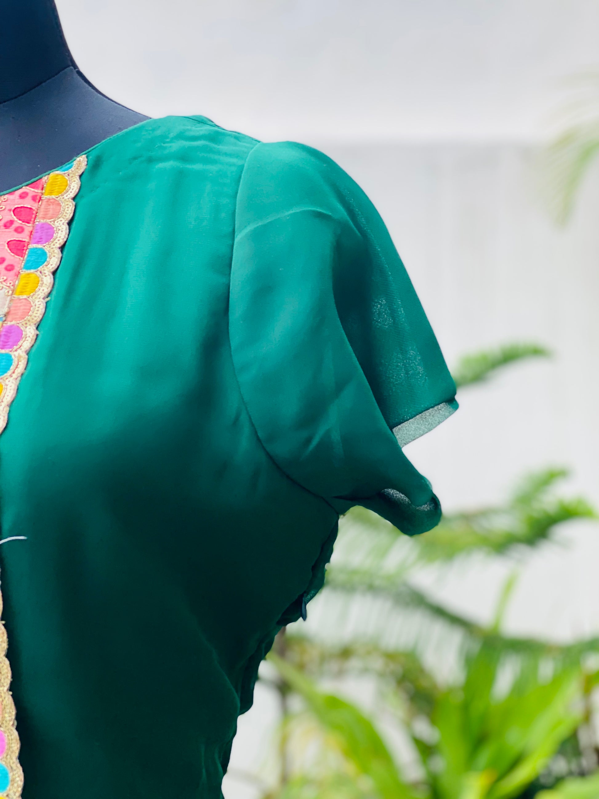 Bottle Green in colour, this maxi features beautiful silk Pasted embroidery.