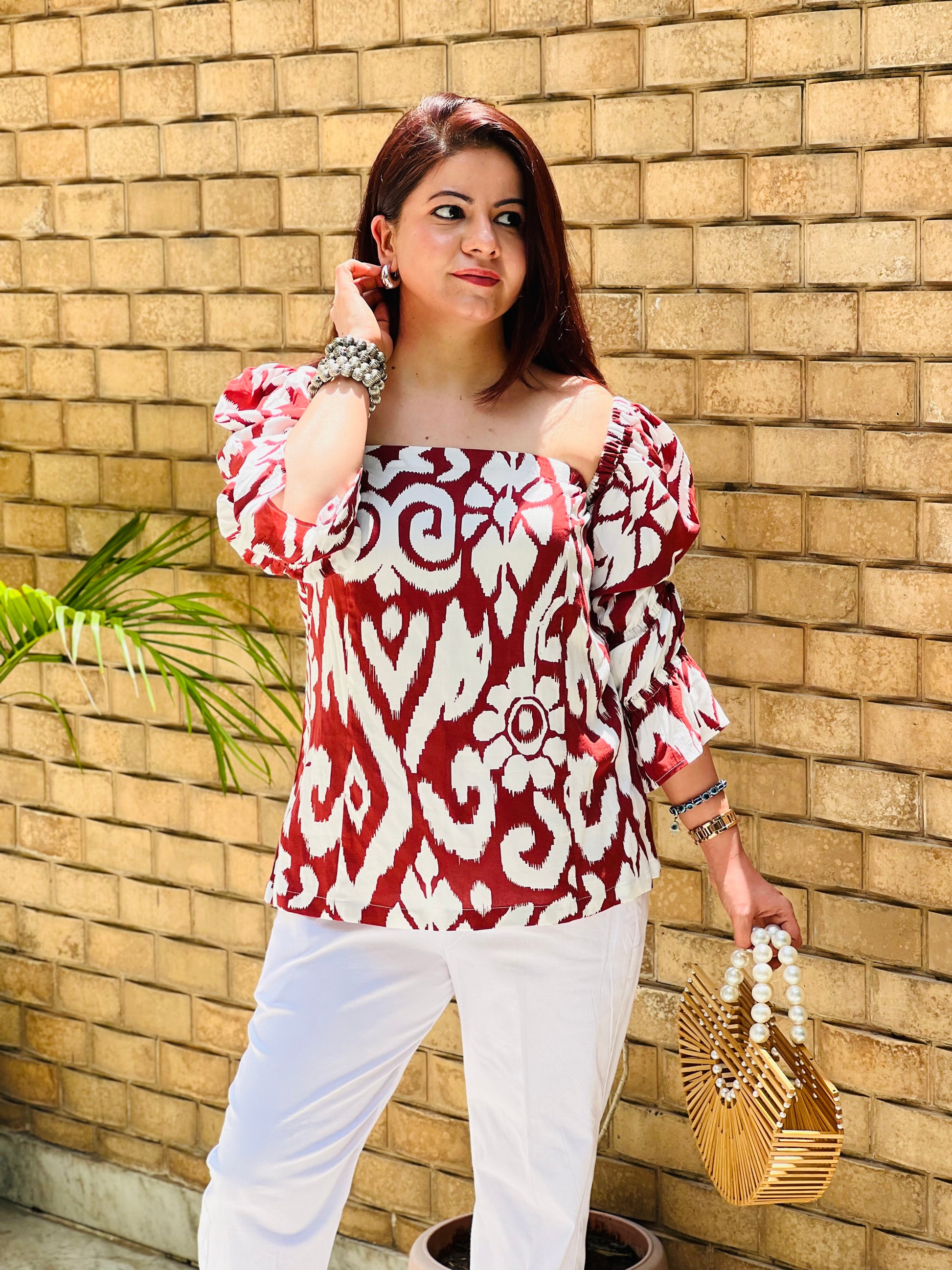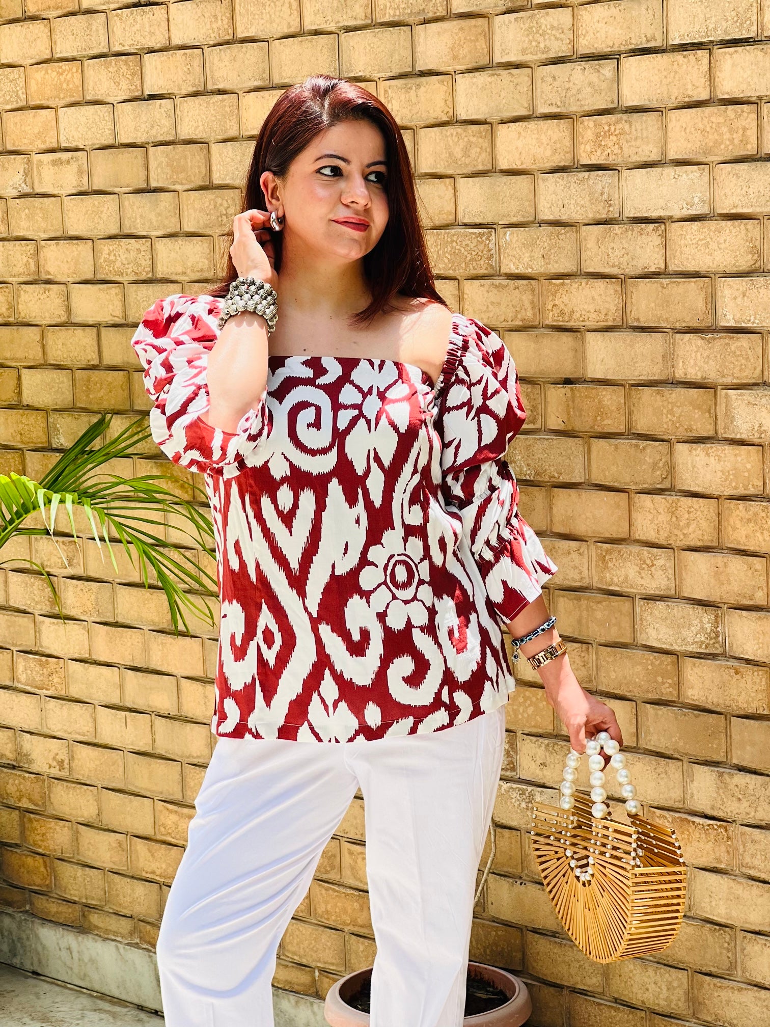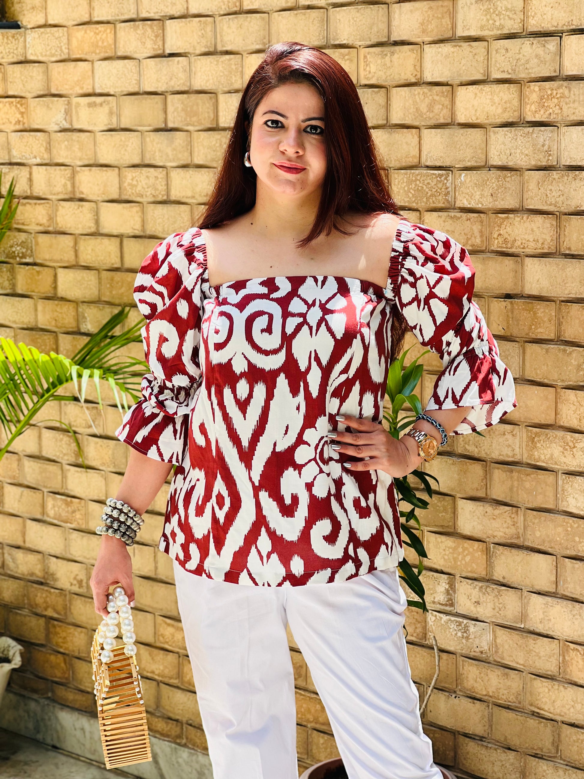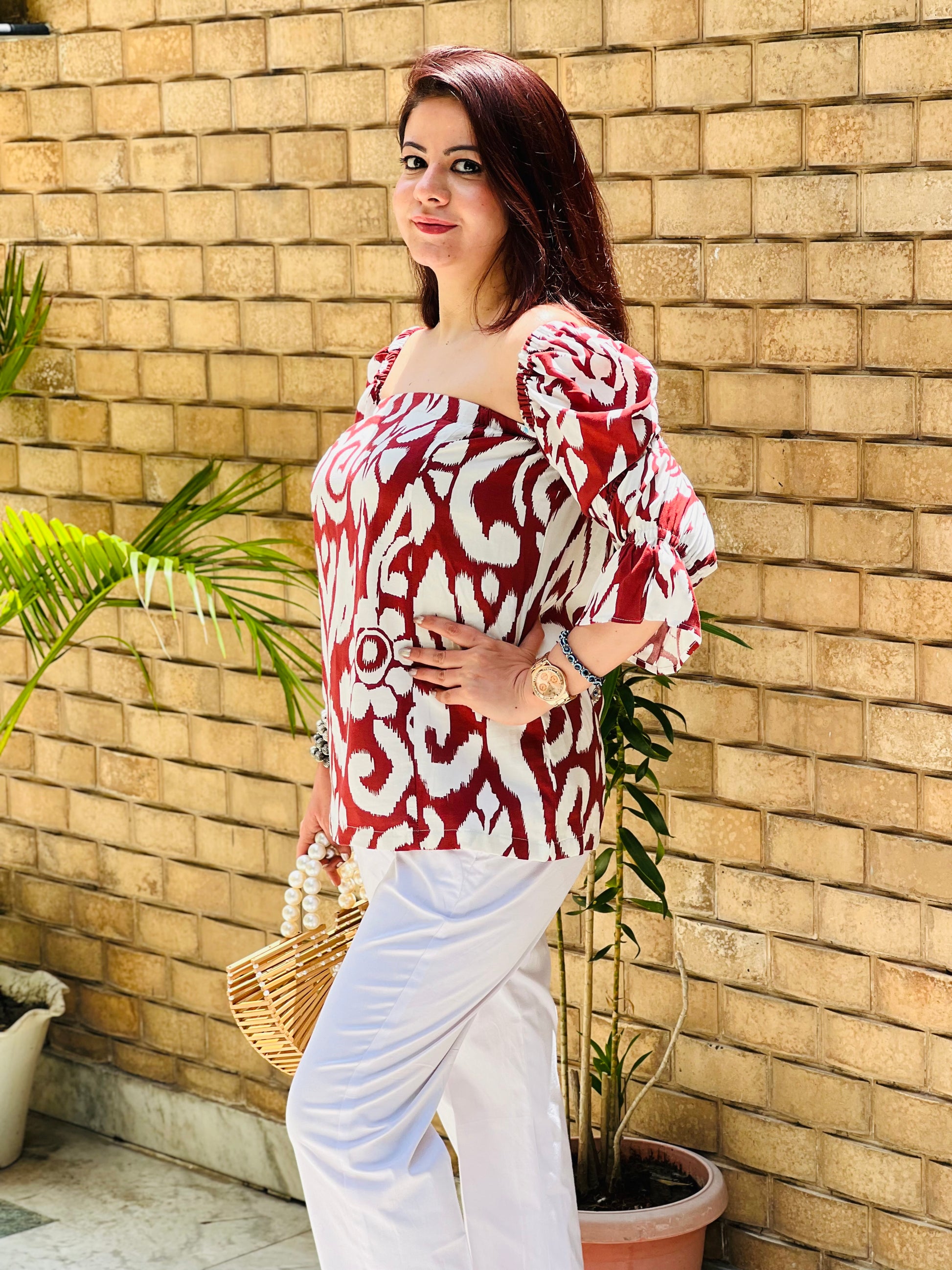 "Embrace your roots with the 'Brown My Tribe' top! 🌿🤎 This earthy, tribal-inspired print with puffed sleeves adds a touch of tradition and modern chic to your wardrobe. Perfectly unique! ✨" |